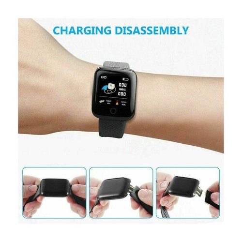 1.3 Inch BT Smartwatch – Black. 1.3 Inch BT Smartwatch – Black This sports watch is with 1.3in large display and a curved color screen, you can raise your hand to brighten it. Multi-functions, can monitor physical healthy changes, detect healthy data, display risk status and evaluate results to let you know better about your body healthy. Order this product from TilyExpress Uganda at the best price and have it delivered right to your doorstep Features : TPU band and TFT glass mirror, protect your dial from wearing and scratching. 1.3in Oled full-color screen with touching control function, easy and convenient to operate. UBS charges the directly large capacity batteries with a working time of up to one week. Both IOS and Android are supported, the system requires Android 4.4 or above / IOS 8.0 or above, and BT 4.0. IP67 life water-resistant can be applied for daily life activity requirements. Multi-languages for your option including English/Spanish/French/Portuguese/German/Russian/Japanese, etc. Functions: time calorie display, heart rate, blood pressure, step movement track, call and massage reminder, alarm, sleep monitoring, etc. Specifications : Color: Black Front Frame: ABS Back Cover: ABS Watch Band: TPU Screen Material: TFT Control Mode: touching screen, mobile APP control Battery Capacity: 100mAh Screen Size: 1.3in 240 * 240 pixel Wireless Distance: 5-10m Charging Method: USB BT Version: 4.0 (named D13) Phone Version: IOS 8.0/Android 4.4 and above Proof Rate: IP67 Standby Time: two weeks Use Time: one week Band Width: 18mm Dial Size: 43.5 * 36 * 12.3mm / 1.71 * 1.42 * 0.48in Package Weight: 66g / 2.33ounce Package Size: 75 * 75 * 45mm / 2.95 * 2.95 * 1.77in To charge, remove the straps and plug in any USB Port Notes : Please allow a 1-10mm error due to manual measurement, thanks for your understanding! Item color may show slight aberration due to different shooting lights and monitor displays. Please keep away from hot water / hot bath / hot vapor.