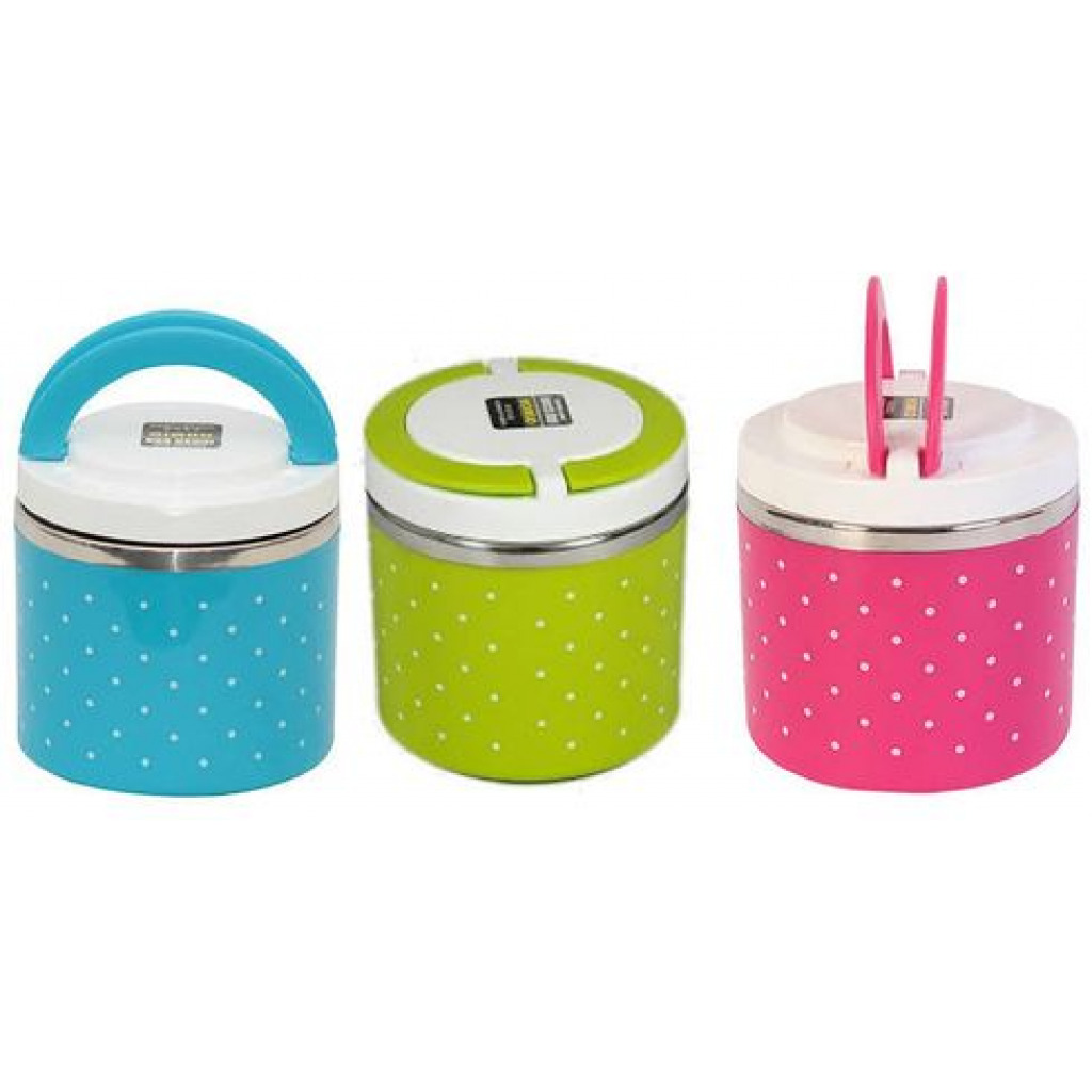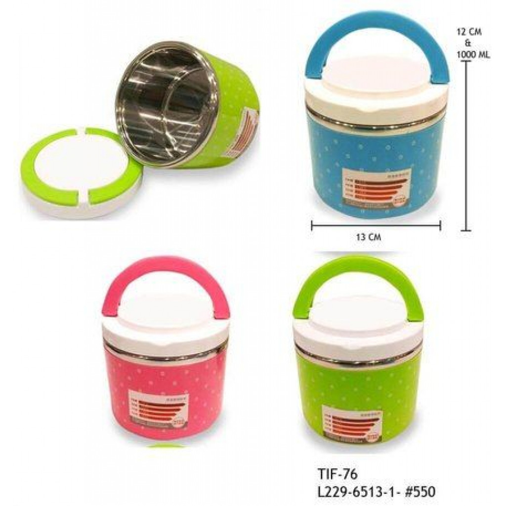 1 Layer Stainless Steel & Plastic Food Grade Insulated Lunch Boxes Container Tiffin Box Car Food Container Tiffin Box for Kids School Office 1 Layered Food Grade Stainless Steel Tiffin Box Or Lunch Box Made With Union Stainless Steel from inside And Outer Covering With Plastic. Take this Tiffin Box to the office, school, on the road, camping or hiking. This durable Tiffin Box is the perfect size to fit in your backpack or purse and durable enough to keep up with your busy lifestyle. Insulation ensures that the food remains hot up to 4-6 hours. Colour: Multicolor, Material: Stainless Steel, Package Contents: 1 Stainless Steel 1 Layer Lunch Box.