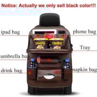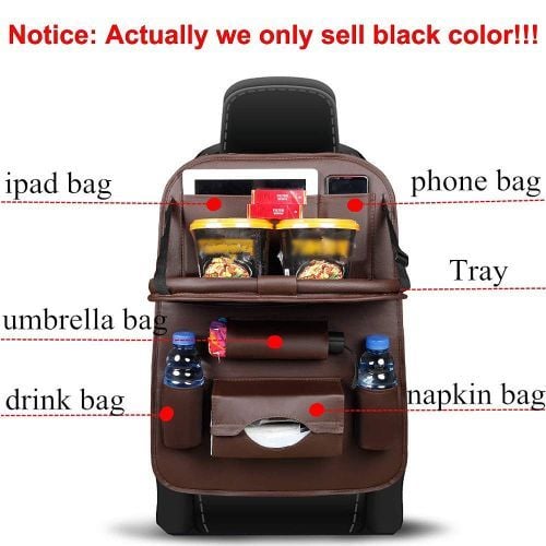 Key Features: LUXURY PU LEATHER MATERIAL :This backseat car organizer use high Grade premium quality PU leather, stays useful for years and makes your car elegant! Soft and comfortable! WATERPROOF & EASY TO INSTALL–The car seat organizer is made of waterproof material. You can easily wipe out the mud, candy, milk,and easy to clean! STURDY FOLDABLE TRAY & ADJUSTABLE –Car back seat organizer Made of hard board, bear up to 2kg items. The Backseat Organizer will stay in place when driving or bumping, it won’t slide off your car seat.STURDY FOLDABLE TRAY & ADJUSTABLE –Backseat car organizer Made of hard board, bear up to 2kg items. The car Organizer will stay in place when driving or bumping, it won’t slide off your car seat. CONVENIENT ORGANIZATION -This car seat back organizer keeps your car organizered, and will protect your seat from getting scratched.CONVENIENT ORGANIZATION -This backseat car organizer keeps your car organizered, and will protect your seat from getting scratched. MULTI-POCKET — Back seat organizer for baby/kids has 9 Separate different size compartments, providing quick access to iPad ,phones, bottles, umbrella, papers, magazines and more.MULTI-POCKET — Backseat organizer for baby/kids has 9 Separate different size compartments, providing quick access to iPad ,phones, bottles, umbrella, papers, magazines and more.