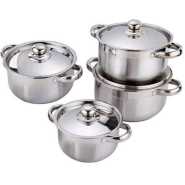 10 PC 22, 24, 26,28,30CM Stainless Steel Saucepans Cooking Pots- Silver. A set of pots made of stainless steel with a thick, multi-layer capsule-type bottom. The pans can be used on any type of hob, including induction. The outer surface of the pots is matted, and along the top, there is a mirror strip. Heat-resistant glass covers are equipped with a steam outlet, along the edge of the reinforced stainless steel rim to prevent chipping. You can use a dishwasher for washing. The set includes three pots, Cooking pot KORKMAZ Induction Silver pot 10 Piece Set 16×9 cm / 1.8 Lt Casserole, 20×10 cm / 3.5 lt Casserole, 20×22 cm / 24 Care Any dish detergents. Do not wash with abrasive abrasives. Do not use metallized or hard wipes or brushes