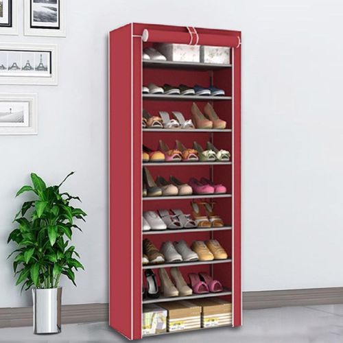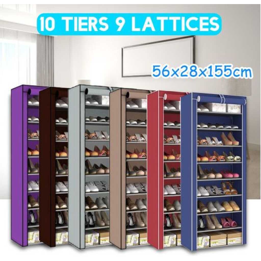 10 Tier 9 Grid Shoe Rack Detachable Dustproof Non-Woven Standing Shoes Storage Organizer – Multi-colour This 9-tier Dustproof Shoe Rack is designed to provide a great storage solution for your collection of favorite footwear. It is constructed out of metal pipes non-woven fabrics and plastic connectors so it can hold numerous pairs of shoes. This innovative lightweight space saving shoe rack can be placed in a cubby closet mudroom or busy entryway to keep shoes or accessories accessible. Each shelf holds up to 3 or 4 pairs of full-size shoes Side pockets for shoe brushes keys toys or other sundries. With zippered cover this elegant shoe cabinet will keep the dust away and when gusts coming you can just zip down the cover to keep your shoes unviewable. Package Included: 1 x Shoe Rack (Only Rack. Other things shown in the picture are not included.) Specifications: Color: Wine red, Coffee, Silver grey, Purple, Dark blue, Brown Material: Steel pipe+Non woven Pipe diameter: 9.8MM Size: 56*28*155cm/22.05″x11.02″x61.02″ [Conversion: 1cm=0.3937 inch, 1inch=2.54 cm] Features: Strong Material Constructed from selected non woven breathable fabric, high quality steel tube and PP plastic connectors, sturdy and stable for long term use. Abundant Storage Space Durable 9 tiers Shoe Rack can Store up to 27 pairs of shoes to keep your bedroom, hallway or mudroom well organized. Dustproof Zipper doors can protect shoes from dust, dirt, water, damp, and it can be rolled up easily, convenient to take shoes in or out. Easy assemble You can remove a layer to fit not only boots, high heels, but also fit purses or other larger accessories, disassemble it and assemble it as your need. Suit for your entryway, closet or mudroom living room, bedroom, or kitchen away from mess, ideal home office organization rack. Note: Due to different producing batches, product details might be a little different. If you mind the difference, please buy it carefully. Please allow 1 3CM differs due to manual measurement. Due to the different display and different light, the picture may not reflect the actual color of the item. Thanks for your understanding.