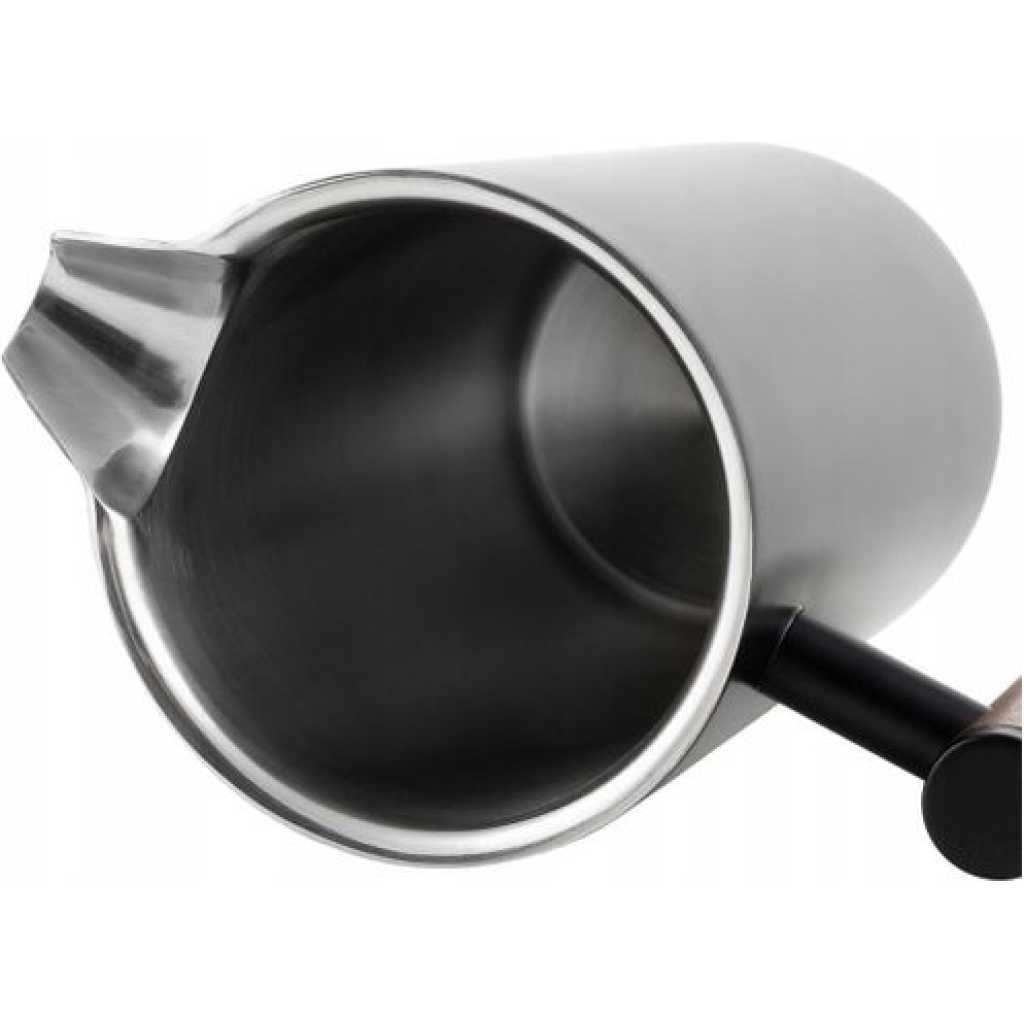 Perfect gift: Ideal as a coffee or tea maker. Also suitable for hot milk, chocolate, fruit tea, lemonade. Whether at home, outdoors, camping, travel or picnic, this coffee press is an indispensable companion. It is an ideal gift for everyone, such as coffee lovers, DIY enthusiasts and foodies! Double-walled insulation: Our two-layer coffee pot is made of double-walled stainless steel, so they keep your coffee warm for longer periods of time than glass French press. On average, the drink stays warm in the kettle for 60 minutes. Therefore, the coffee maker keeps coffee or tea warm for a long time, and at the same time you do not feel too hot when you touch the outer wall. Unique wooden design: the plunger and handle are made of a solid wood structure that is not easy to burn during use and provides you with a pleasant touch. With smooth lines and beautiful design, it makes your life fun. Poliviar French Press 600 ml allows you to prepare up to 5 cups of coffee and share with family or friends. Splash-proof design: the top spout markings on the lid allow you to find the coffee press spout accurately. The deep U-shaped design has a ribbed spout to prevent coffee from overflowing.