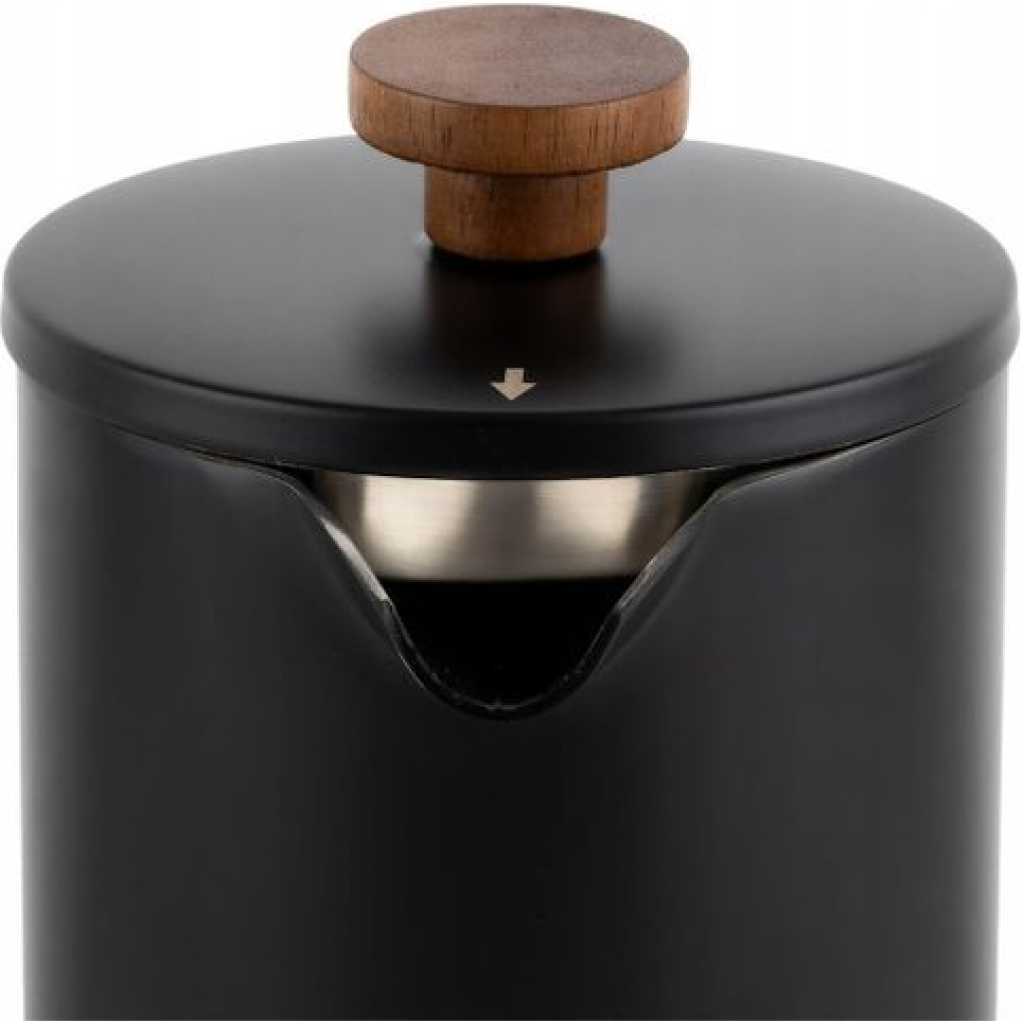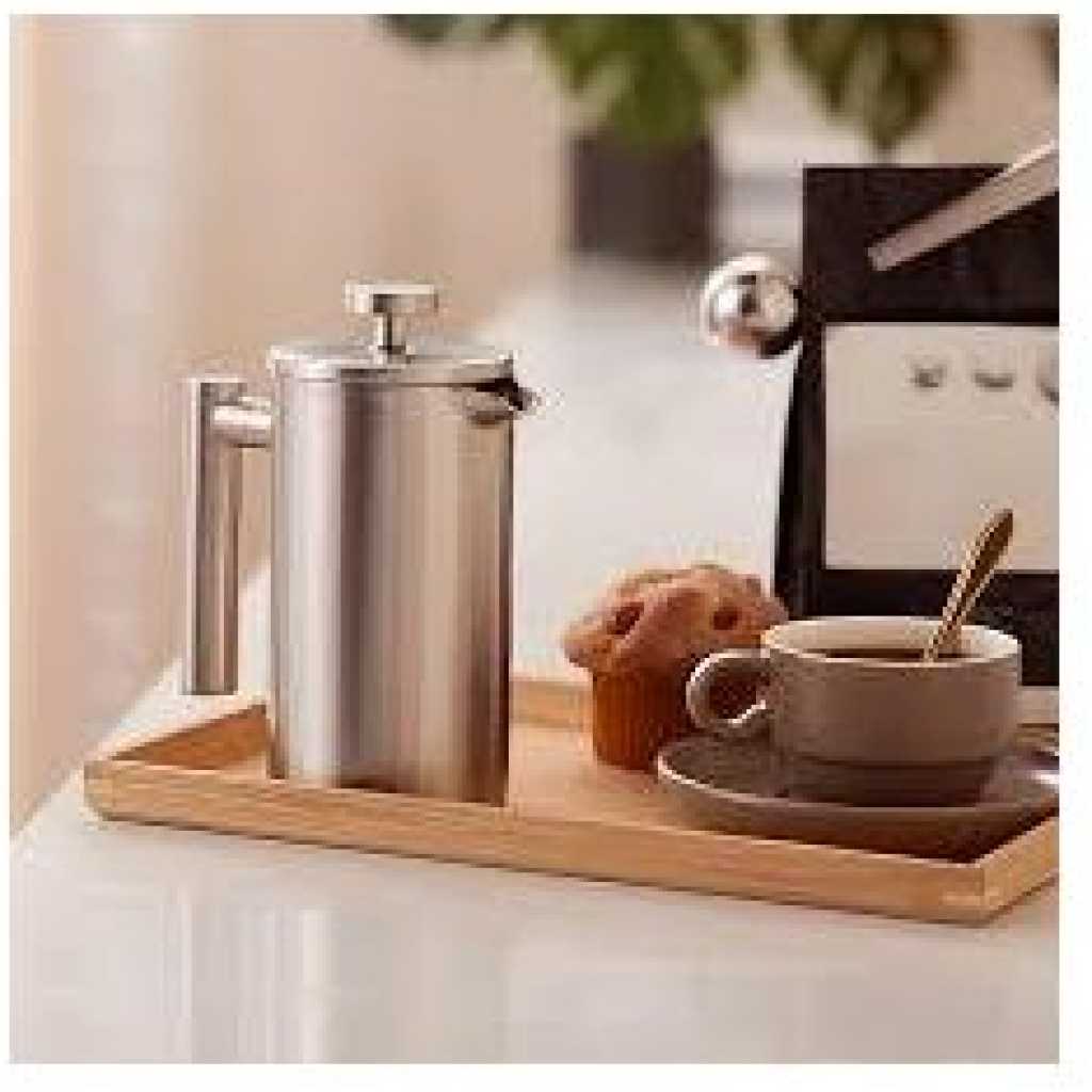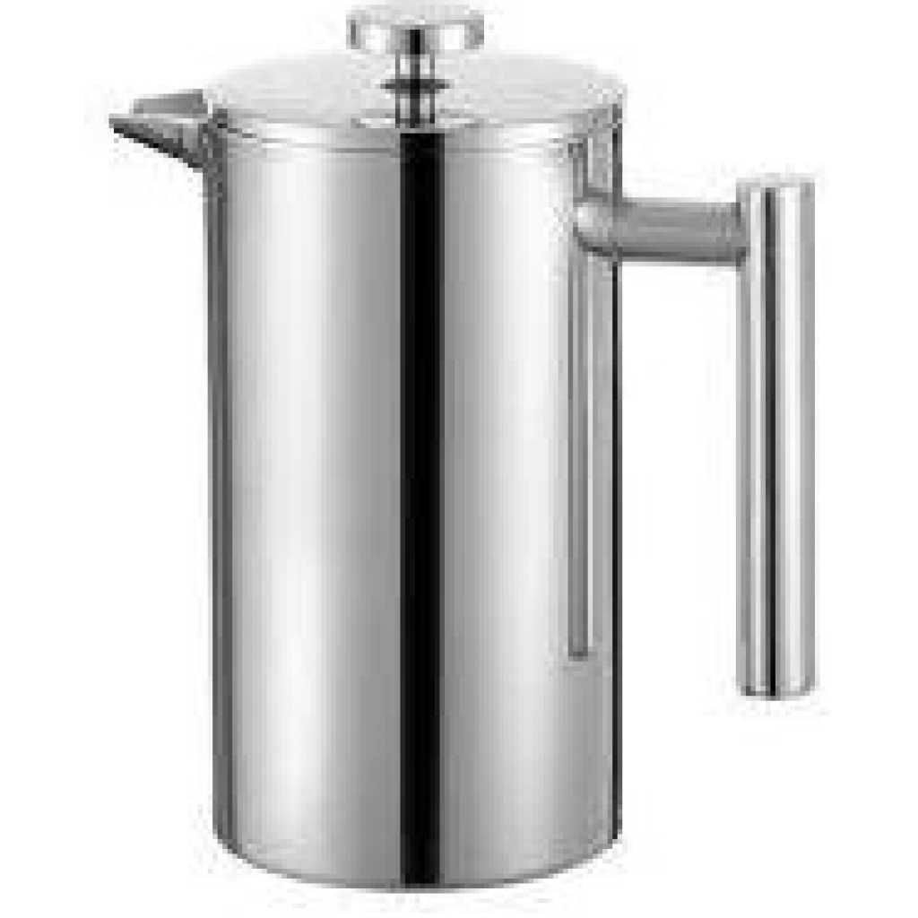 Key Features: HIGH QUALITY – VenDan coffee press is made of stainless steel and has double insulated walls. It keeps the coffee hot and remains cool on the outside, allowing you to handle the coffee press safely. CAMPING FRENCH PRESS – With our premium french press, you can brew the most delicious french coffee when camping outdoors. Use a spoon of coarse coffee grounds and hot water and press the plunger down. MULTI-LAYERED FILTER – Our stainless steel french press coffee maker has a multi-layered filtering system that extracts the best taste from the coffee grounds. Using coarse texture is recommended. PERFECT CAPACITY – The coffee press coffee maker has a capacity of 34 oz and gives you 4 cups of freshly brewed coffee at its maximum capacity. All the parts can also be washed in the dishwasher. EXTRA TOOLS – The french coffee press features a bamboo stirring stick and a coffee spoon. Make sure to stir the coffee well before putting the lid on and pressing the plunger down for the best taste.