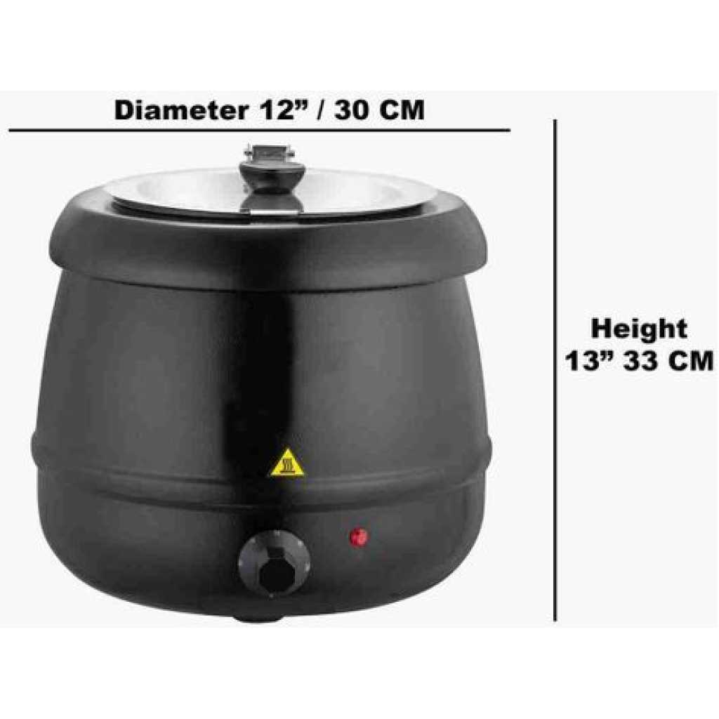 Electric Buffet Soup Warmer Kettle Pot. Hearty homemade soup is a fantastic addition to any menu, especially on cold winter days. With enough room to hold up to 10 litres, the Buffalo soup kettle offers a huge capacity, making it ideal for keeping up with demand in busy buffets, events or cafes. By using a bain marie style wet heat, the Buffalo soup kettle gently warms food without the risk of burning or drying it out. The gentle heat also ensures the soup’s delicious tastes and textures are retained, all the while ensuring the soup is ready to serve at a moment’s notice. The soup kettle is highly versatile too. You’re not limited to just high-margin soup – the kettle can hold anything from curry and chilli to beans and Bolognese, allowing you to offer vast menu choices which draw customers in and keep them coming back for more. Pair up with a chalk board for maximum merchandising opportunity. COMMERCIAL GRADE–Large capacity 10.5 quarts large capacity Soup kettle is designed for commercial use. DURABLE–Food grade 304 stainless steel material that passes food safety tests For safe use. Rust proof and heavy duty. ✪ EASY TO CLEAN – Insert pot is detachable and dish wash safe, easy to clean. ADJUSTABLE HEAT CONTROL — Heat is adjustable, you can always find a right temperature for different food in the pot. Automatic shut-off and keep warm function ETL CERTIFIED–All parts are ETL Intertek certified. Safety and quality certified. Use under 110-120 voltage