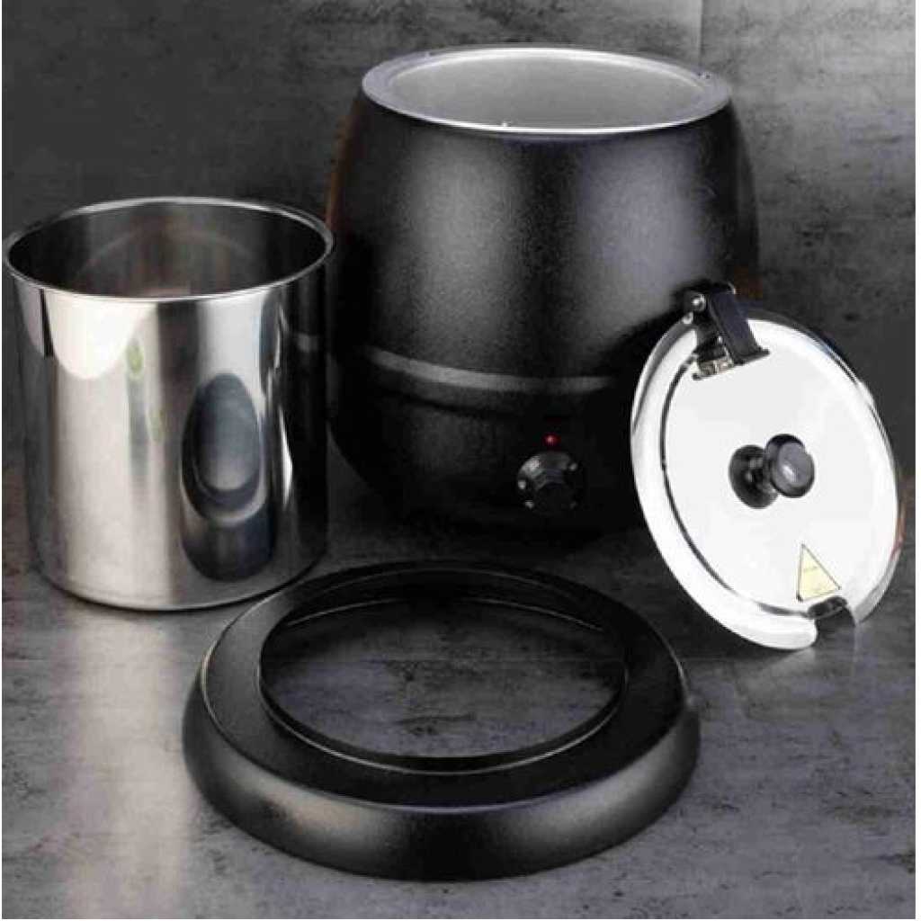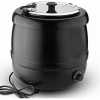 Key Features: Capacity 10Ltr Dimensions 360(H) x 345(Ø)mm Finish – external Black finish Power Type 400W, 220 – 240V, 2A Temperature Range 35°C to 95°C Voltage 120V Weight 4.3kg Colour Black Gentle wet heat operation prevents food burning, retaining taste and texture for longer Keeps soup and other warm food at serving temperature without drying it out Temperature is easily adjusted to best suit the type of food you’re serving Front-mounted temperature dial puts you in complete control Large capacity to serve more customers quickly and increase sales Portable design can be taken anywhere – perfect for mobile catering Includes label pack to easily display contents and maximise sales
