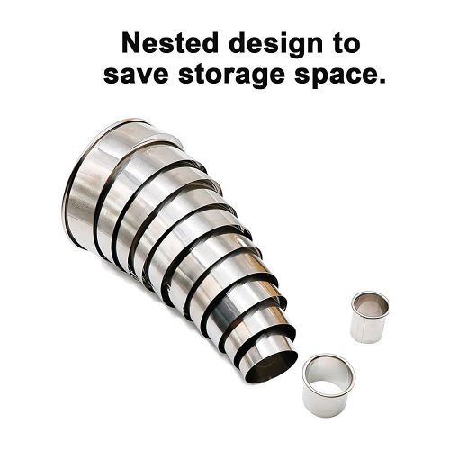 Key Features: 11 Pieces Metal Cookie Cutter Set, Round Stainless Steel Circle Biscuit Pastry Cutters, Assorted Sizes- Silver. Material: high-quality stainless steel. Space and time-saving design: cutters nest within each other. Different sizes: five sizes make this set of cookie cutters more Convenient and practical, you can make different size round cookies easier. Diameters: 3.5″/ 3.25″/ 3″/ 2.75″/ 2.5″/ 2.25″/ 2″/ 1.75″/ 1.5″/ 1.25″/ 1″, height: 1.1″. from 1 inch to 3 1/2 inches in diameter, Multiple sizes give you more choices. Round biscuit cutter: Great for making cookies, biscuits, sandwiches, fondant potatoes, scones, crumpets, vegetable shapes, English muffins, crackers, etc.