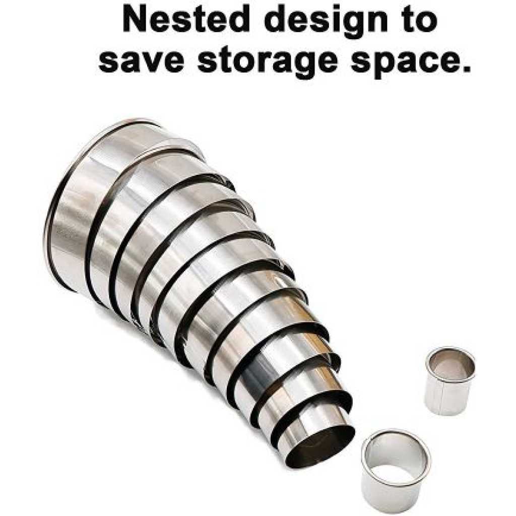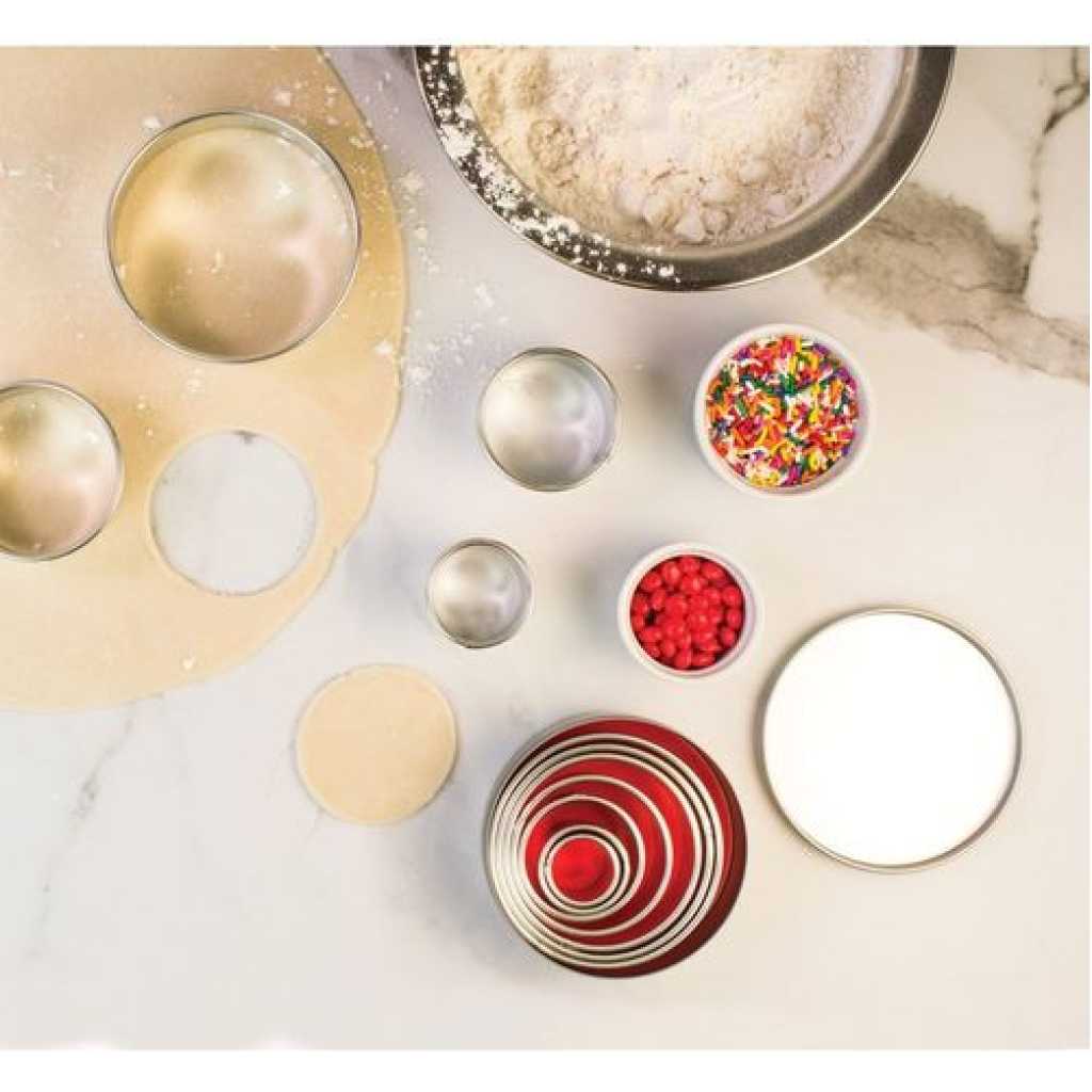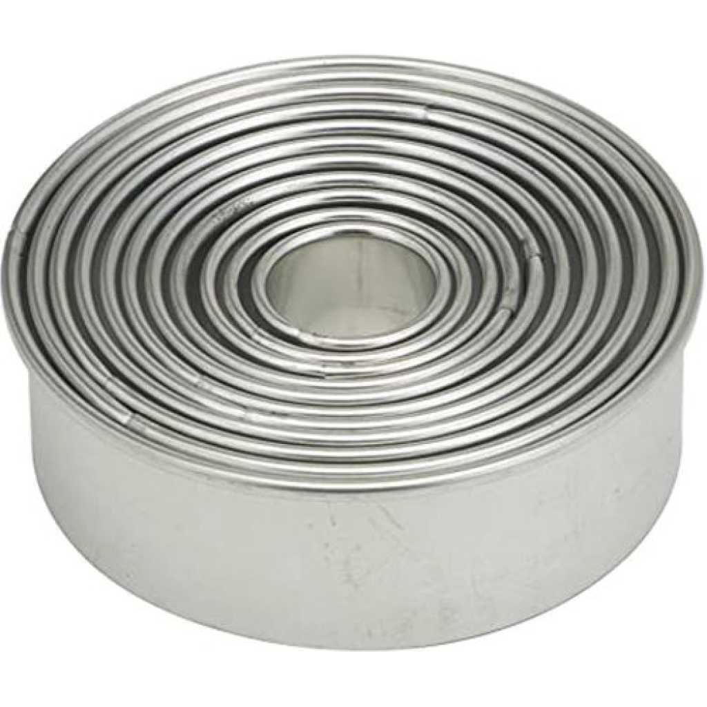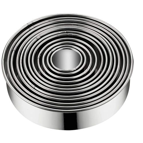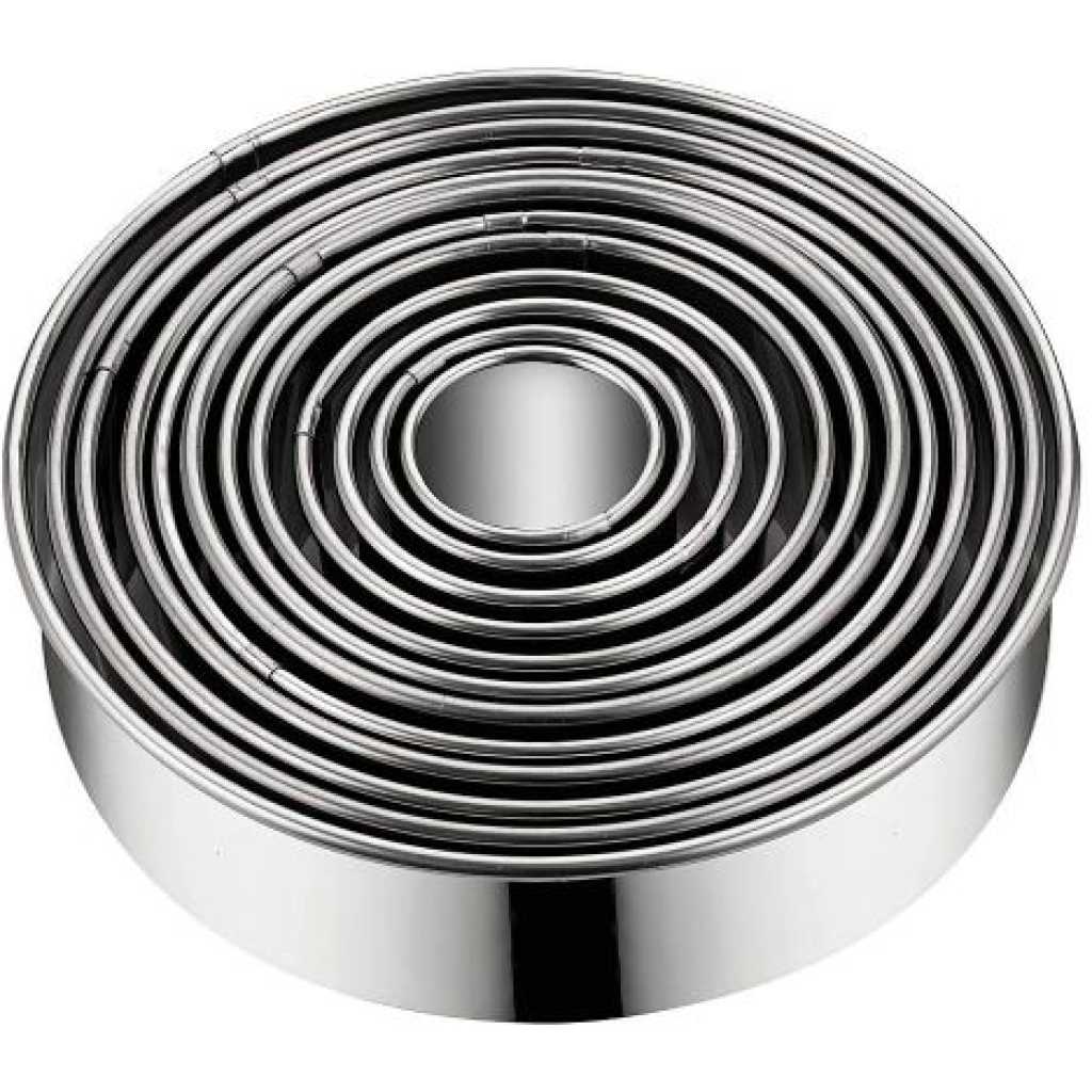 11 Pieces Metal Cookie Cutter Set, Round Stainless Steel Circle Biscuit Pastry Cutters, Assorted Sizes- Silver. Enhance your collection of bakeware with a Stainless Steel Cookie Cutter Set. These durable cutters make perfect cuts through the dough with clean edges giving it a professional bakery-style look. The availability of different shapes makes your cookies not only delicious but also attractive. Use our cookie cutter set and bake assorted cookies to satisfy the cravings of your loved ones. Also, it is a perfect gift for your friends and relatives who love baking as much as you do. 11 Pcs Metal Cookie Cutter Set, Round Stainless Steel Cutter, Assorted Sizes Material: High-quality stainless steel. Size: Diameters: from 1 inch to 3 1/2 inches in diameter, Multiple sizes give you more choices. Package included: 11 x Round cookie cutters. Great for making cookies, biscuits, sandwiches, fondant potatoes, scones, crumpets, vegetable shapes, English muffins, crackers, etc.