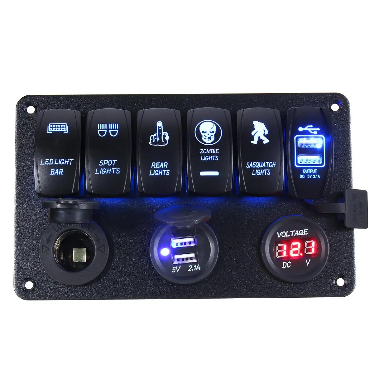 12-24V 6-gangový vypínač panelu LED Rocker USB nabíječka Voltmetr vypínač obvodu pro motocykl, auto loď