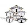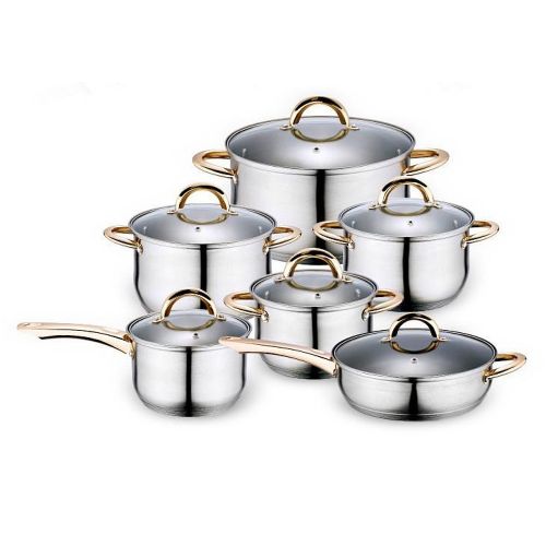 Key Features: Color : Silver Material: stainless steel. Cover material: heat resistant glass. Number of items in a set: 12 Bottom type: 5-layer. Measurement scale: yes. Handles fastening method: riveted connection. Handle type: hollow. Lid with a steam outlet: yes. Metal polishing: mirror / satin. Dishwasher safe: yes. K-gold plate knob and handle