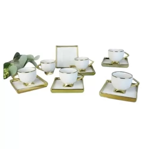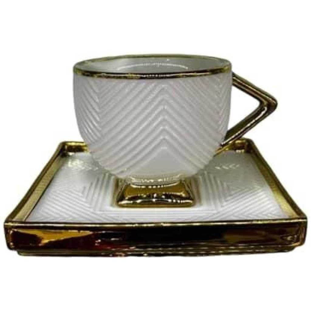 Set contents: 6 coffee cups, 90 ml, 6 saucers, material: porcelain A unique aesthetic is created when aerodynamic shapes with geometric shapes meet bright colours and glitter… The Art Deco coffee cup set adds unforgettable elegance to your coffee drinks with this unique aesthetic and offers a long service life with its smooth structure and durability made of porcelain. It is recommended to wash this product by hand Enjoy the pleasure of drinking Turkish coffee with every sip from the KARACA coffee cup! Choose the right size of the mug you are looking for: 75-90ml classic Turkish coffee, 90-120ml filter coffee, 140-160ml is perfect for your Turkish coffee enjoyment. EXCELLENT GIFT: With its unparalleled beauty and aesthetic that will last for years, it makes a great gift for new homes and families as the simple yet elegant design allows for versatile use and will suit every taste.