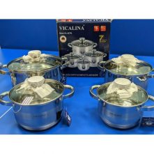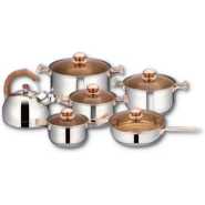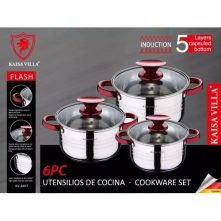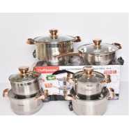 Key Features: Color : Silver Material: stainless steel. Cover material: heat resistant glass. Number of items in a set: 12 Bottom type: 5-layer. Measurement scale: yes. Handles fastening method: riveted connection. Handle type: hollow. Lid with a steam outlet: yes. Metal polishing: mirror / satin. Dishwasher safe: yes. K-gold plate knob and handle