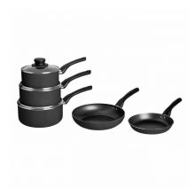 This stainless cookware set is built to last a lifetime. Elegant design, easy to use, nice to stack, excellent range of sizes. You can put them in oven with the lid on. This is the cookware set you will ever need. LFGB & FDA listed for your health, environmental-friendly & PFOA-free Teflon generates zero chemicals, defending health for you and your loved ones ERGONOMIC CURVED HANDLE: revolutionary handles are designed to keep you from fatigue even after long sessions of cooking STUNNING 12 PIECES SET: come in an elegant color, fits well into any decor, the durable, soft, comfortable and colorfast coating on handles and lid finials provide superior heat-resistant performance for your safety during cooking BREAK-RESISTANT LID & MULTI-LAYER BOTTOM: clear glass lid for easy observation during cooking; multi-layer bottoms distribute heat evenly and are compatible with types of cooking range including induction cooker, gas range What’s on the box? saucepan with lid16 X 9.5cm1.9L*Casserole with lid16 X 9.5cm1.9L18 X 10.5cm2.5L20 X 11.5cm3.4L24 X 13.5cm5.8L*Frypan with lid & Marble Coating24 X 6.5cm