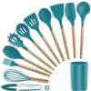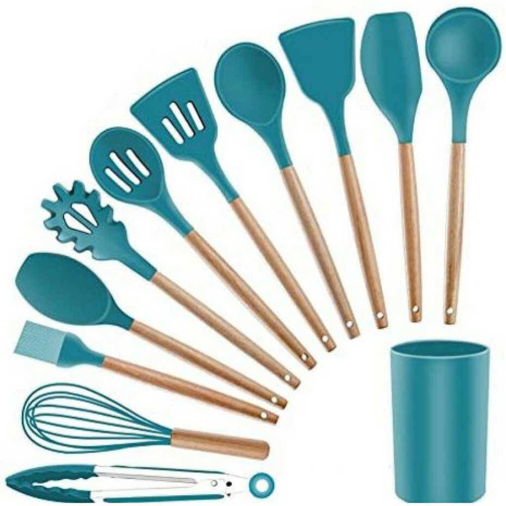 Key Features: Perfect for storing on the kitchen worktop Light weight, resistant to high temperature Anti-burning and anti-wrestling design safe food-contact silicone Scratch-friendly for non-stick cookware Modern and functional design, easy to handle High-heat resistant (-22℉/-30℃ to 392℉/200℃) Non-slip, elegant & handy beech wood handles Stain-resistant Easier cleaning or washing