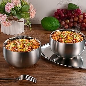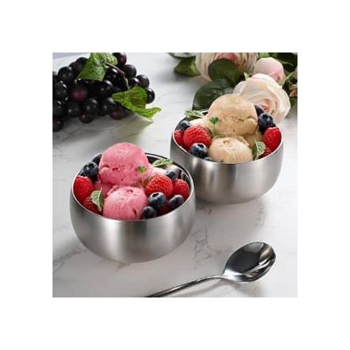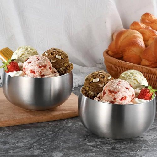 Bidponds 16.9 Fl Oz Ice Cream Bowl,Stainless Steel 316# Insulated Bowl,Double Wall Vacuum Soup Bowl Cereal Bowl Salad Bowl, Dishwasher Safe, Set of 2 2 Packs 16.9 Fl Oz Stainless Steel 316# Insulated Bowl,Double Wall Vacuum Soup Bowl Material and surface technology: Stainless steel 316#,the inner side of the bowl is mirror polished,and the outer side is brushed. (Package list: 2 pieces of stainless steel double wall insulation bowl Important Note: Do not put metal bowls in the microwave Ice Cream Bowl Keep the original flavor of cold drinks or iced food Soup Bowl,Rice Bowl Keeping hot rice and soup warm for a longer period of time becomes a must in autumn and winter! Noodle Bowl Even holding steaming hot noodle soup or delicious fried rice in both hands, it will not be hot. Capacity & Dimension (1)Maximum capacity: 500ml/16.9 fluid ounces. (2)Bowl mouth diameter: 13cm/5.1inches (3)Bowl height: 7.5cm/2.9inches (4)Net weight of a single item: 165g/0.36lb Structural Design Double wall insulated design protects your hands from cold ice cream or hot soup! It is vacuum between the two layer,don’t heat it directly. Stainless steel Cannot be used in microwave oven.