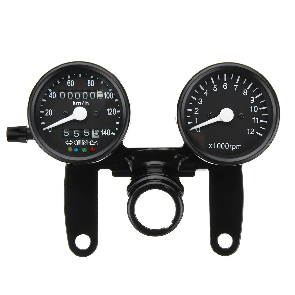 12V Motorcykel LED Baggrundsbelysning Odometer Tachometer Speedometer Dual Gauge Meter Med Beslag Universal