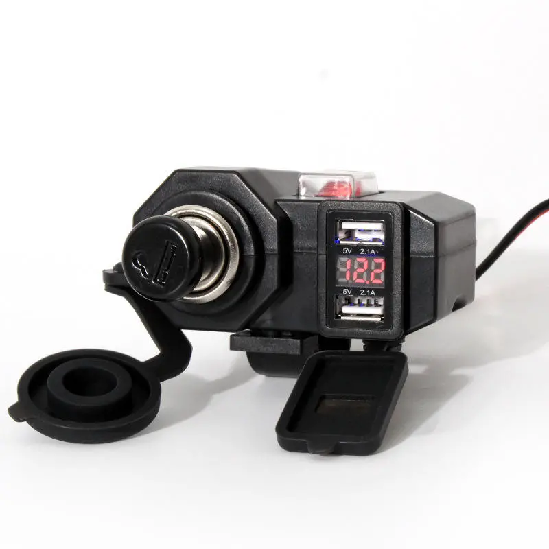 12V Vandtæt Dobbelt USB Oplader Strømadapter Stik + Voltmeter