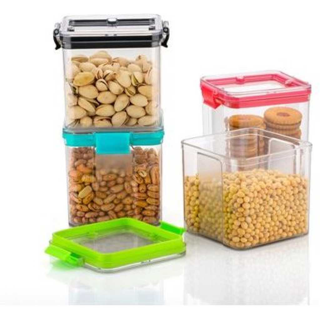 Plastic Transparent Plain Storage Box Tins Containers Airtight Design — The rubber seal will stay on in place and perfectly connected to the edge of the canister. This would prevent air to enter, protecting the hermetic seal of the jar. ENLOY airtight canister not only protect the contents from insects and moisture, but also ensure they remain fresh for a long time. Easy to Use and Clean — ENLOY stainless steel kitchen canisters are made with a wide 4.7″ opening which makes it easy to use full size 1 cup measuring scoops. The canisters are dishwasher-safe, however we recommend hand-washing to protect the finish. One Piece Design will not hide dirty. A quick wipe with a damp cloth is sufficient for a light cleaning. Safety — ENLOY airtight canister is made of good quality excellent rubber seals and clasps. It is safe for everyday use. The BPA free silicone gasket have no smelly odour in the process of using. Sweet Design — Clear clamp lid allow to easy viewing of canister contents. With transparent plastic lid, you will save more time. They are great for storing cookies, coffee, flour, sugar, nuts, coarse cereals and more. This practical canisters set is perfect for various occasion including countertop, restaurants, bistros, pubs, cafe, pantry and so on.