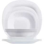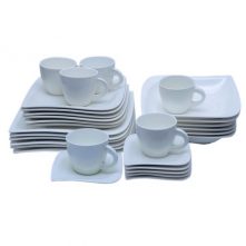 Key Features: 16 Piece Dazzling Blue Plates, Cups, Bowls Side Plate Dinnerware Set – Blue 16-piece set; service for 4 Four 10.5″ (26.7 cm) dinner plates Four 8.5″ (21.6 cm) salad plates Four 6.25″ (15.9 cm) bowls Four 12 oz mugs The Porcelain square dinnerware is microwave and oven safe to 450 degrees Dishwasher safe for easy cleanup 100 percent Porcelain