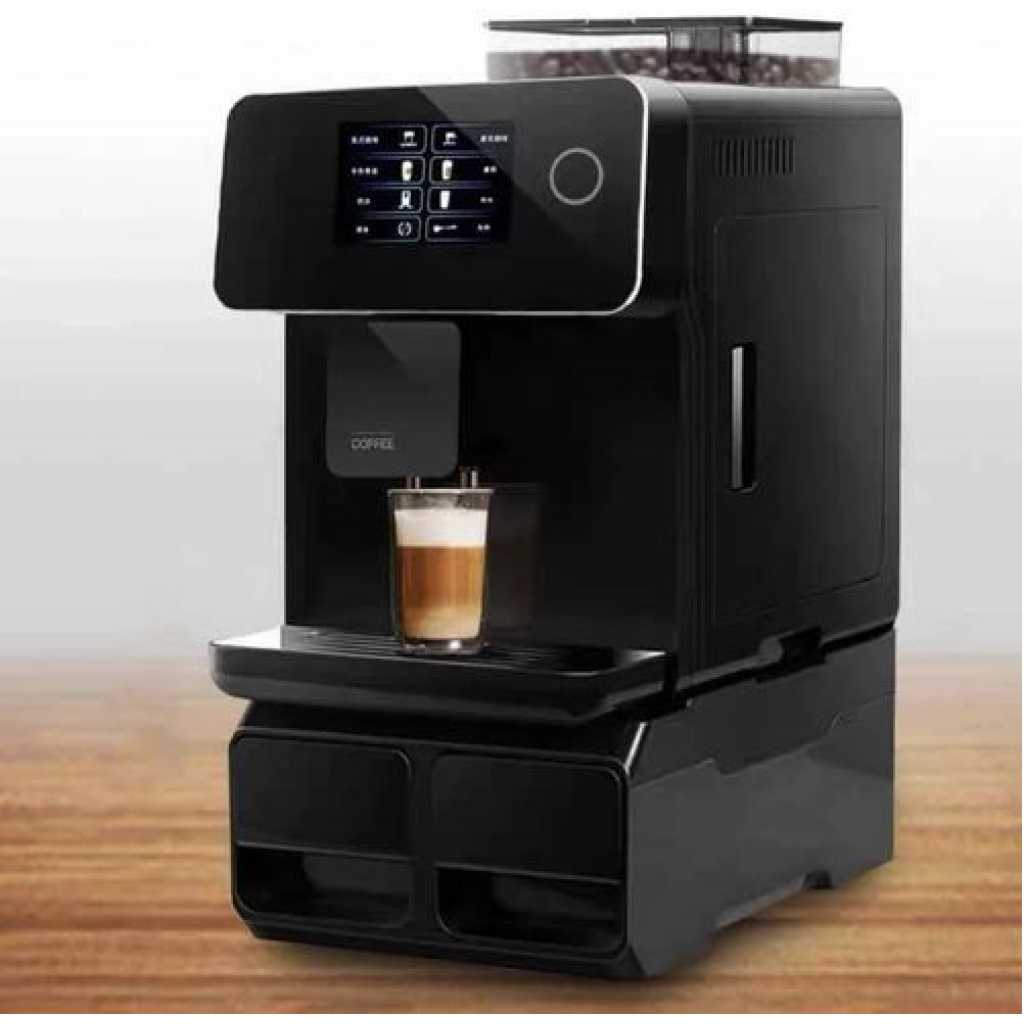 Product Description Smart touch screen coffee machine This is a coffee machine that can be used for both domestic and commercial use. It can make freshly ground fancy coffee with one touch. Compared with instant coffee, it has a richer and mellow taste. You can enjoy the life of Italian coffee in 30 seconds. It is compatible with coffee powder. . One machine with multiple functions, in addition to fancy coffee, it can also receive hot water, hot milk, and a cup heating system on the top Every detail is carefully designed and crafted 1. Touch color screen The 5.0-inch touch screen, dual-screen display coffee making, simple and clear. Built-in electronic chip, store four kinds of fancy coffee making process, making fancy coffee with one button, novices can quickly get started. 2. Six water outlets Prevent the water outlets from interfering with each other and give you the purest taste 3. Automatic cleaning One-click cleaning saves you the trouble of cleaning the machine 4.19BAR core Commercial grade 19Bar pump pressure, water pump imported from Italy, detachable brewing unit design, automatic milk frothing system, automatic coffee machine mainstream configuration 5. Upgraded brewer The performance is increased by 20%, providing more fragrant and thicker coffee 6. Double boiler design The double boiler heating system shortens the waiting time for coffee making and steam, and it takes about 30s from the touch to a cup of standard espresso, and the coffee is extracted quickly and stably Power supply: 110V/60Hz Rated power: 1250W Pressure: 19Bar Water inlet method: water pump/water purifier/built-in water storage tank Bean bin capacity: 250g mode:Espresso, American coffee, cappuccino, latte, milk, hot water Product specifications: 270*410*500 mm Product net weight: 13.5KG