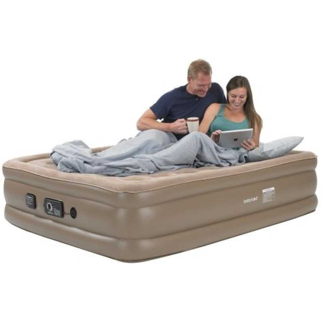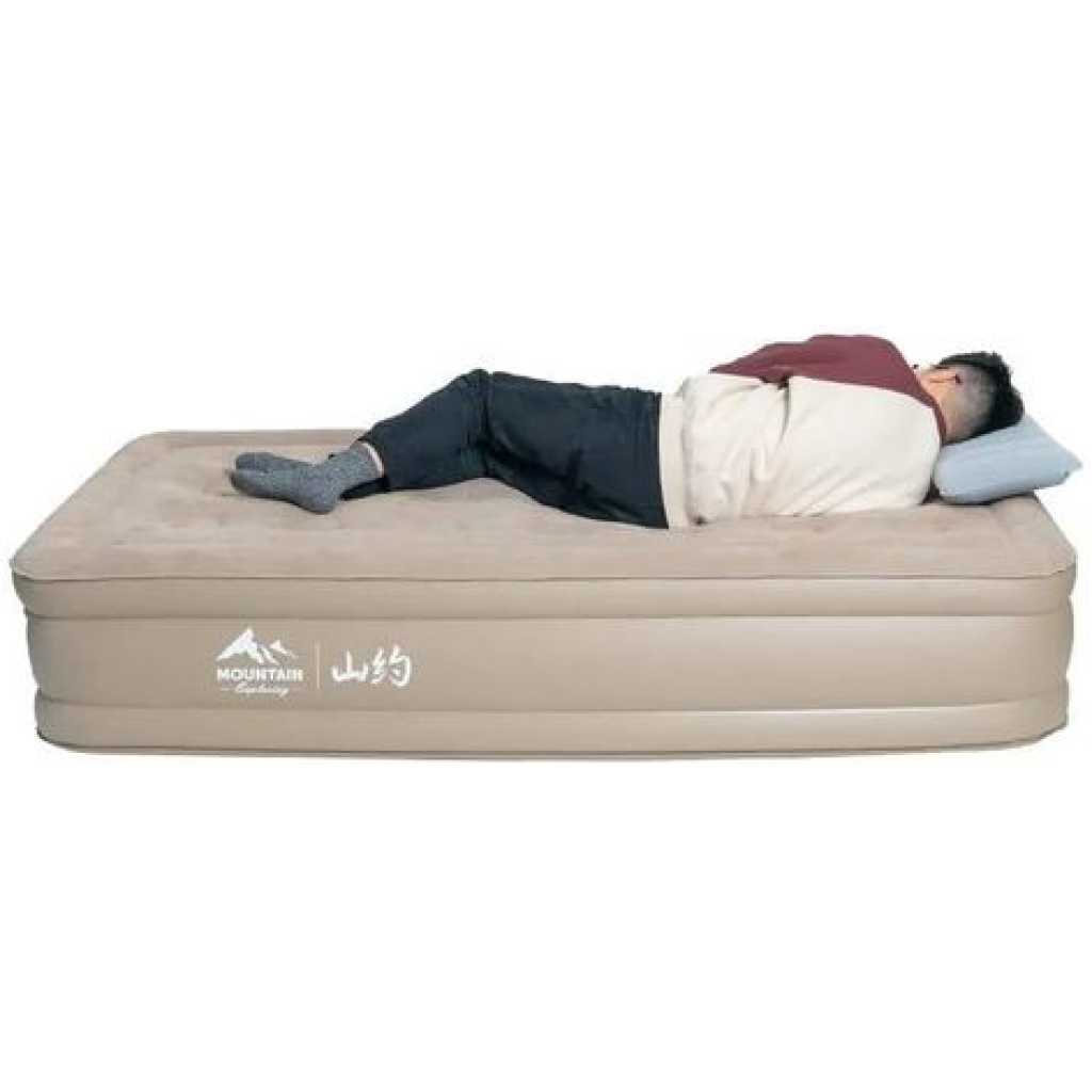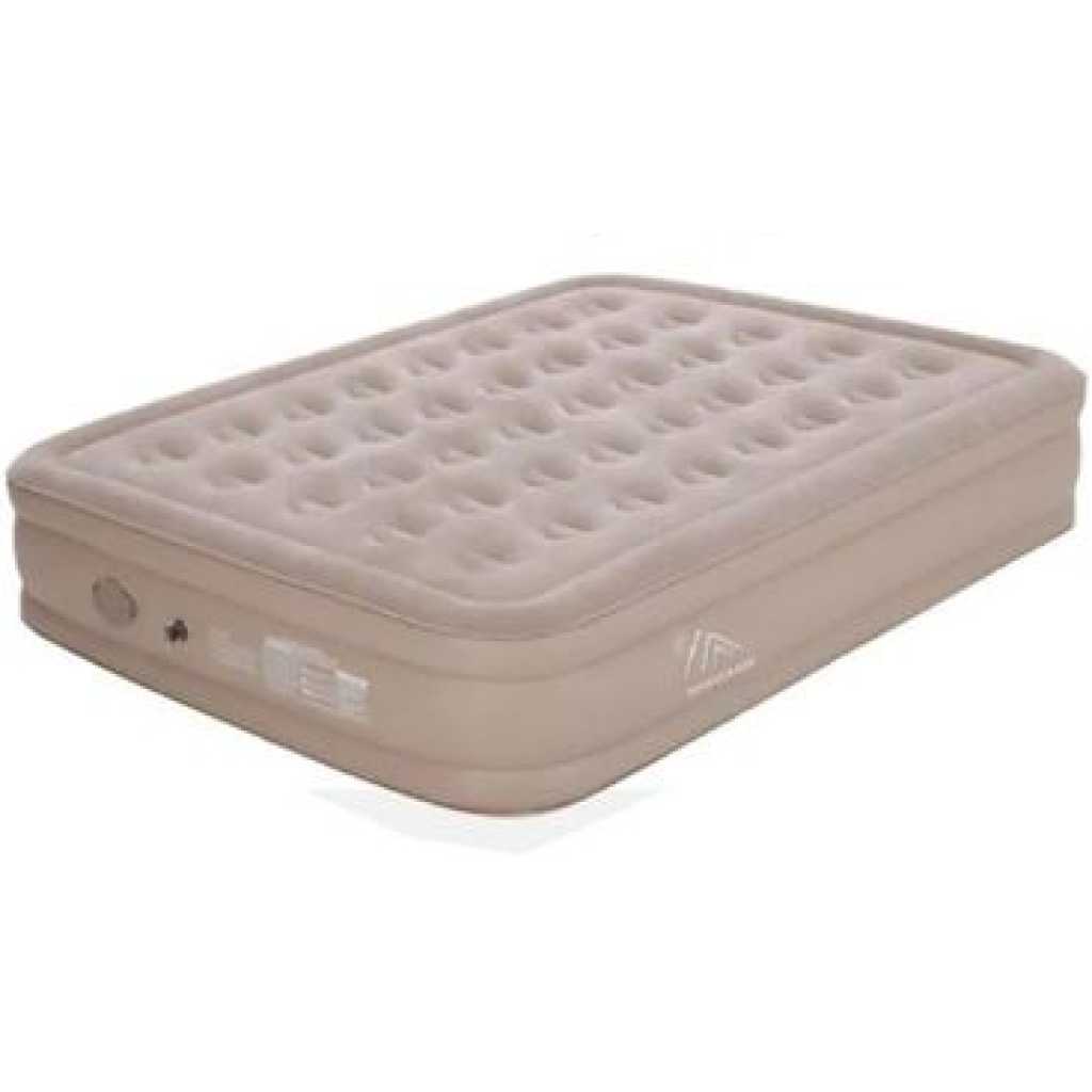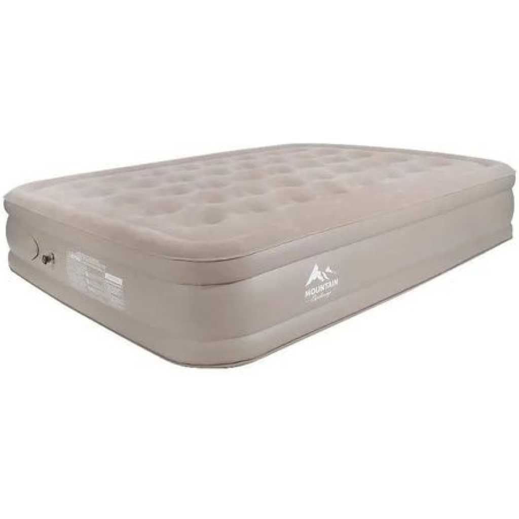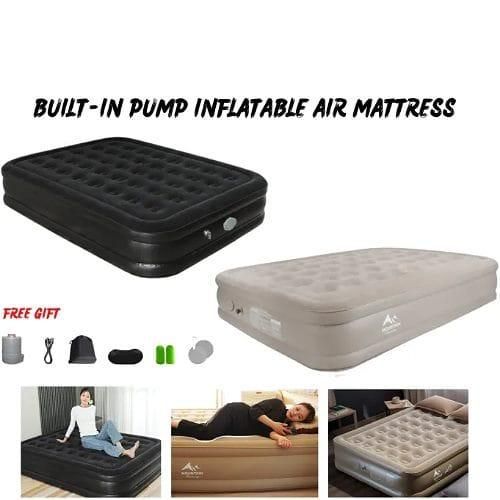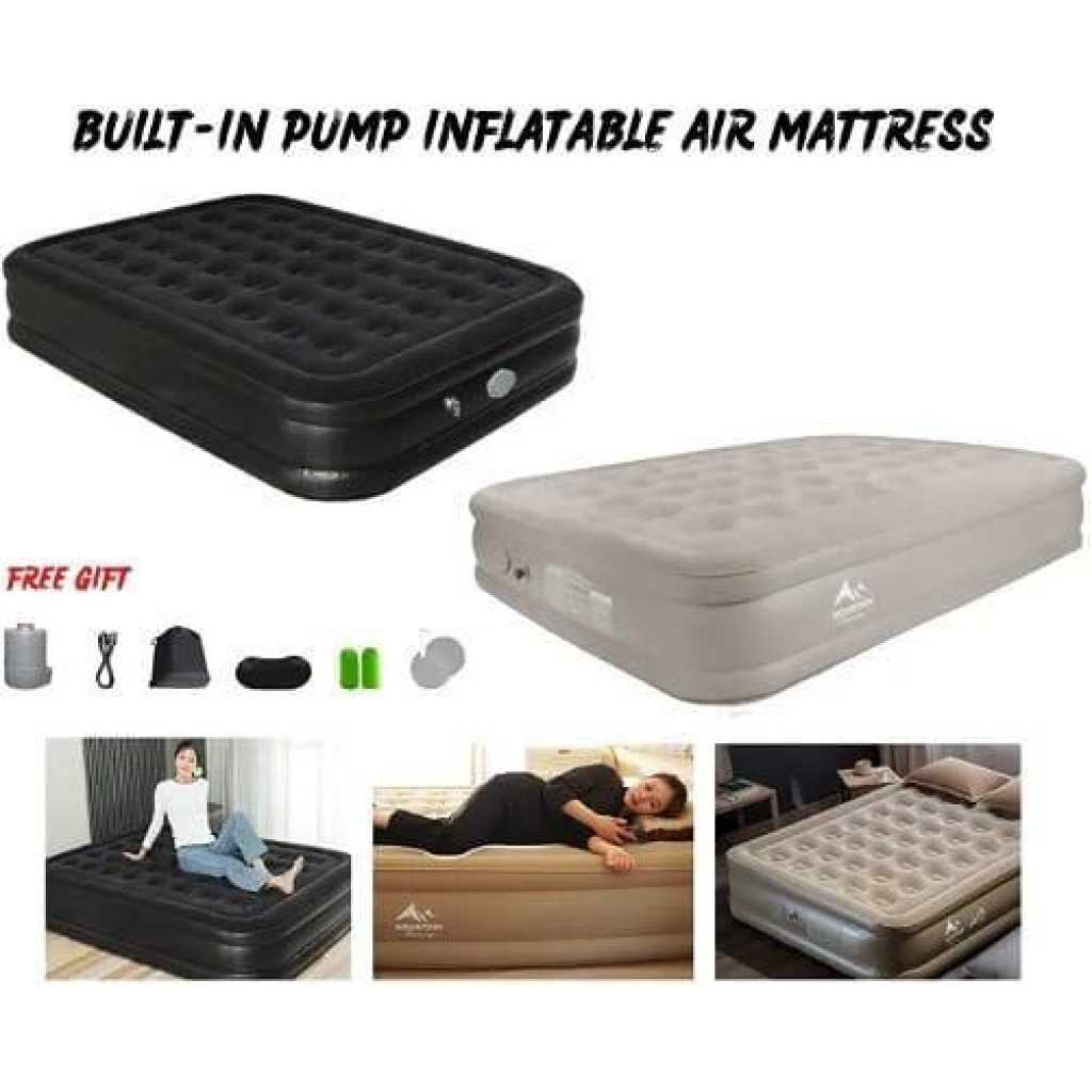 Key Features: 198x152x40cm Double Portable Mountain Air Mattress with Built-in Pump Double Height Inflatable Mattress -Multicolor 【Quick Inflation/Deflation in 3 mins】: The integrated pump inflates/deflates the Airefina air mattress in only 3 mins to achieve your desired comfort & firmness level with the push of a button easily. 【Extra-strong Support】: Combine with 40 internal air coils and a high-strength composite mesh structure that enhances durability and support, providing full body support and bed-like comfort. 【Comfort Flocked Top & Thick Waterproof Material】: Features a comfortable waterproof flocked top layer and durable eco-friendly multi-layer PVC bringing an unrivaled sleeping experience. Note: Do not wear or bring sharp objects onto the mattress. Clean up the area before placing the air bed. 【Large Queen Size】: Airefina inflatable mattress has inflated dimensions of 80x60x18in and a weight capacity of up to 750lb, a travel carry bag for easy packing and transportation, and repair patches for puncture or tear accidentally included. The deflated compact size is only 17.4*7.4*12.8inch and merely weighs 19.2 lbs. Suitable for camping, travel, guest beds, etc. 【Durable Profile & Antislip bottom】: The 18-inch profile makes it easy to get in and out, and the raised edge for more sleeping space protects your items from falling. Antislip bottom prevents the air mattress from moving even on wood or tile floors keeping your bed flat and stable. Remember, you may need to inflate your air mattress for a few seconds to regain your desired firmness level due to the PVC naturally stretching during use.