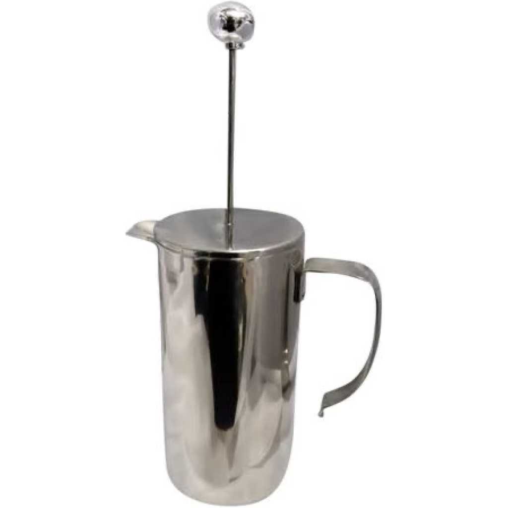 French Press Coffee Maker Why does coffee brewed from a French Press taste so amazingly different? Unlike other brew methods, the French Press gives you absolute control over the infusion time (longer infusion time produces a bolder and stronger cup). Perhaps more importantly, the unique screen filter of the French Press allows essential coffee oils to make their way into your cup; oils that would normally be blocked out and eliminated by paper filters. These oils are responsible for producing a very full body fantastically thicker and more flavorful than anything you’d experience from any other brew method, period. Better yet, the French Press is super inexpensive, simple to use, easy to clean, better for the environment (because no disposable filters are needed) and takes up virtually no space in your kitchen. Our 8-Cup French Press is similar to the SterlingPro French Press, designed with double walled Stainless Steel which retains brewing temperature better than glass versions and also won’t shatter when dropped. Add our French Press to your cart and treat yourself to some amazingly flavorful home brewed coffee!
