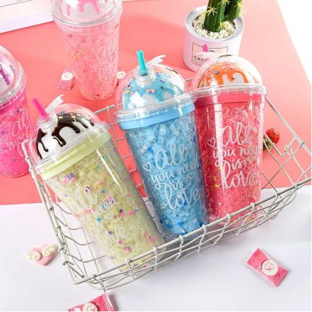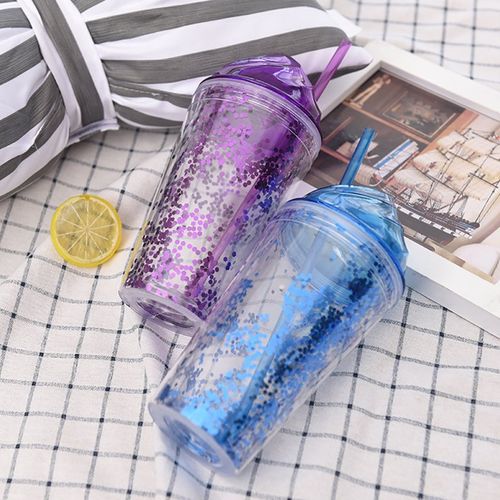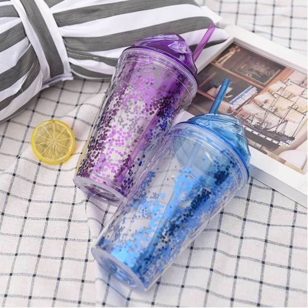 1pc 2-Layer Ice Cream Smoothie Juice Bottle Cup Kettle with Straw. This Mug is designed to add a splash of color and style to your home. It has a lead-free colored glaze. This mug is, refrigerator, oven, and dishwasher-safe, making it perfect to suit your fast-paced lifestyle.