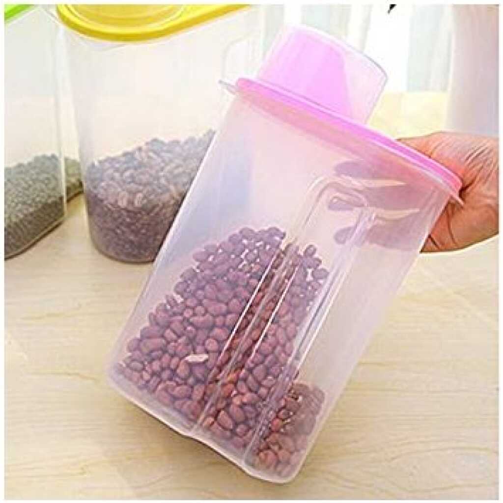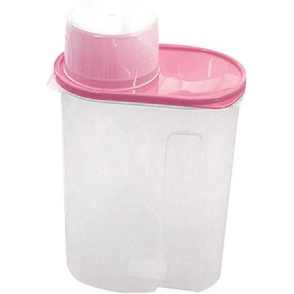 2.5 Litre Food Plastic Storage Grains Cereal Container, Pink. These practical storage containers are great for storing cereals, flour, rice, and much more. It will keep your kitchen pantry neat and organized while keeping your food fresh.
