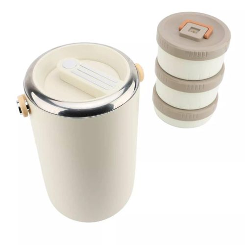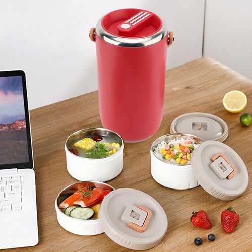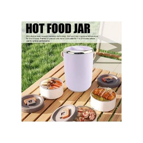 Key Features: 1. VACUUM LONG LASTING INSULATION: 2 layer vacuum insulation technology, long lasting insulation for 6-8 hours. To get better results, please pour hot or cold water into the food jar to preheat or precool for 1-2 minutes before putting in the food. 2. 3 COMPARTMENT FOOD CONTAINER: This lunch box has enough capacity for 3 stackable insulated lunch box. You can carry soup or a variety of dishes so you can enjoy a richer, more nutritious lunch or dinner, microwave safe for easy reheating. 3. LEAKPROOF DESIGN: Each lid has a sealed silicone to prevent food spills, and an exhaust vent valve on the lid that can be gently pressed to make the lunch box easy to open. Carry normally, there is no possibility of food spilling, shaking and inversion are not recommended. 4. EASY TO CLEAN: Wide mouth design, the interior 304 stainless steel, polished smooth, very easy to clean, in order to use the insulation lunch box for a long time, please dry and store the lunch box after each cleaning. 5. SAFE: The lunch box’s sealing lid and carrying handle are made of food grade PP material, and the lunch box is 304 stainless steel. Strong, not easy to deformation, to ensure the safety and health of your family, you can rest assured that use.