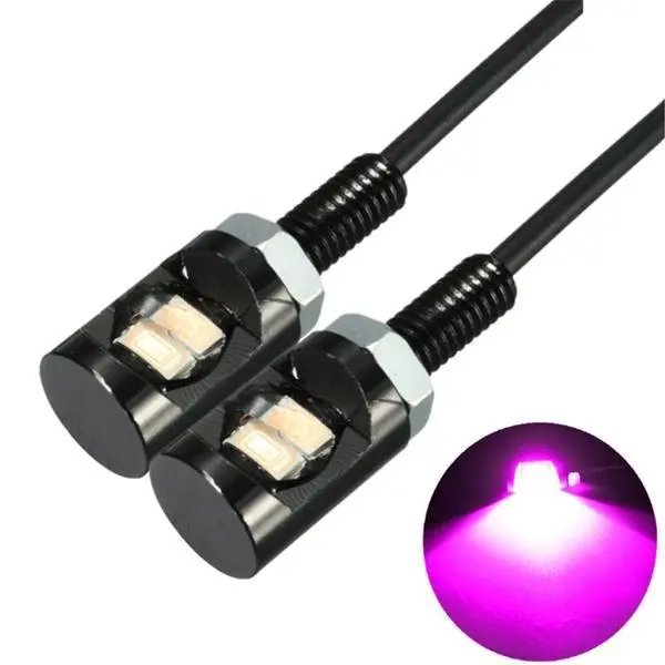 오토바이 자동차에 사용되는 2 개의 DC 12V LED 등록판 라이트 나사 볼트 독수리 눈 램프 Pink