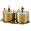 2 Pc Seasoning Containers Spice Jar Rack Condiment Salt Pepper Sugar Storage Organizers With Serving Spoons – Gold. Made of food-grade stainless steel, non-toxic and durable to use. Three condiment jars are included in each set and can hold the sugar, salt, oil, pepper powder, and other seasoning. All parts are rounded smooth, avoiding hurting your hands. With a stainless steel jar holder, easy to detach and refill seasonings. Smooth surface, easy and convenient to clean. Condition: 100% Brand New Material: Stainless Steel Overall length: Approx. 14cm / 5.51 inch 2 * Condiment Jars 2* Spoon 1 * Holder