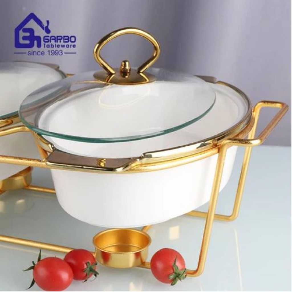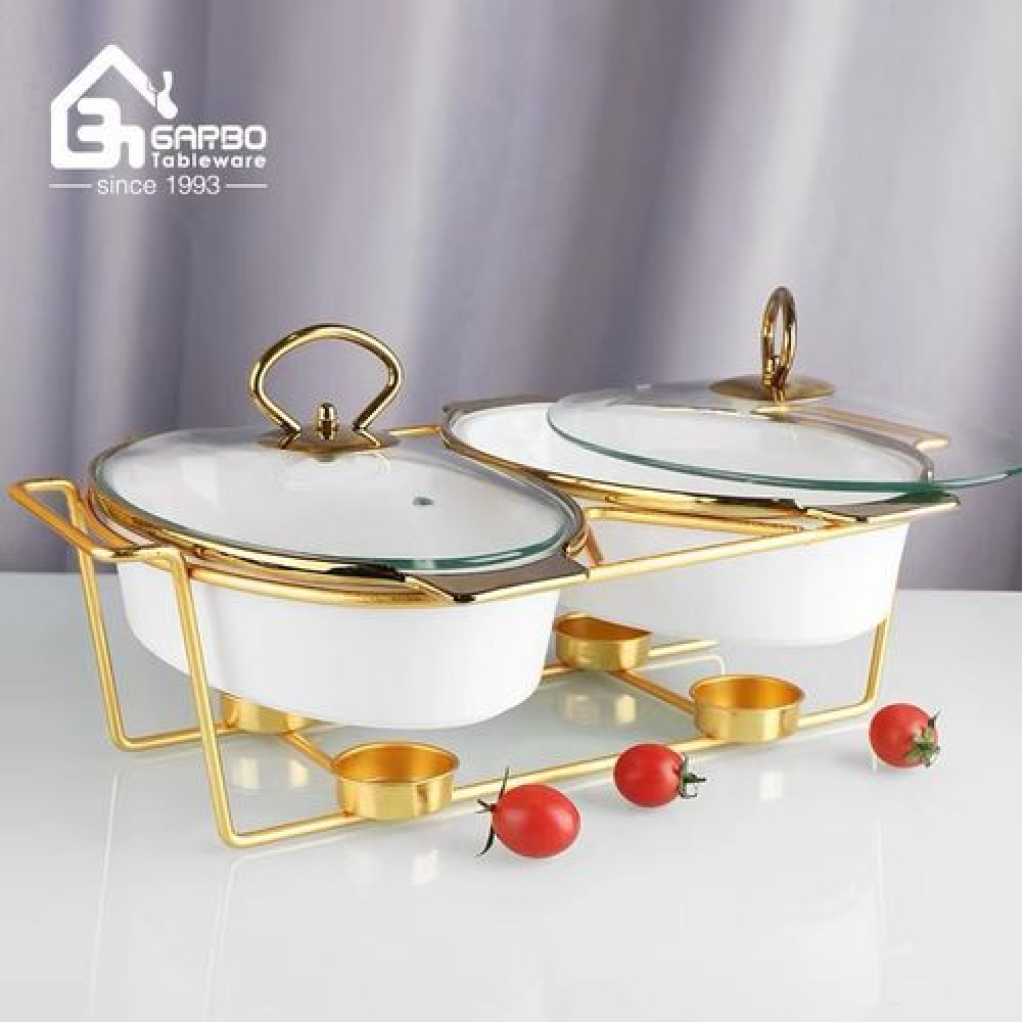 Key Features: Material:Our chafing dish is made of high-quality ceramics and has a smooth surface. Easy to clean, beautiful design, sturdy and durable, saving space Insulation:Chafer can keep warm. If you want to keep it warm, add hot water to the water pan and light the fondue fuel can Easy To Clean:This kind of hot pot is not suitable for cleaning with steel wool. It should be hand-washed with hot soapy water and then rinsed thoroughly. Dry immediately after washing. Avoid salt solutions or acidic foods or harsh detergents to maintain the smoothness Temperature maintenance: It has a bottom tray that can support fuel burners at the bottom of each buffet warmer can keep food warm for extended periods of time and provide consistent heat distribution, which is is perfect for buffet serving and other situations where you want to keep food warm for extended periods of time, meantime, minimizing the flame exposure, so as to ensure guests and staff in safety Widely Used: Party trays are a popular choice for restaurants, buffets, catering, Thanksgiving
