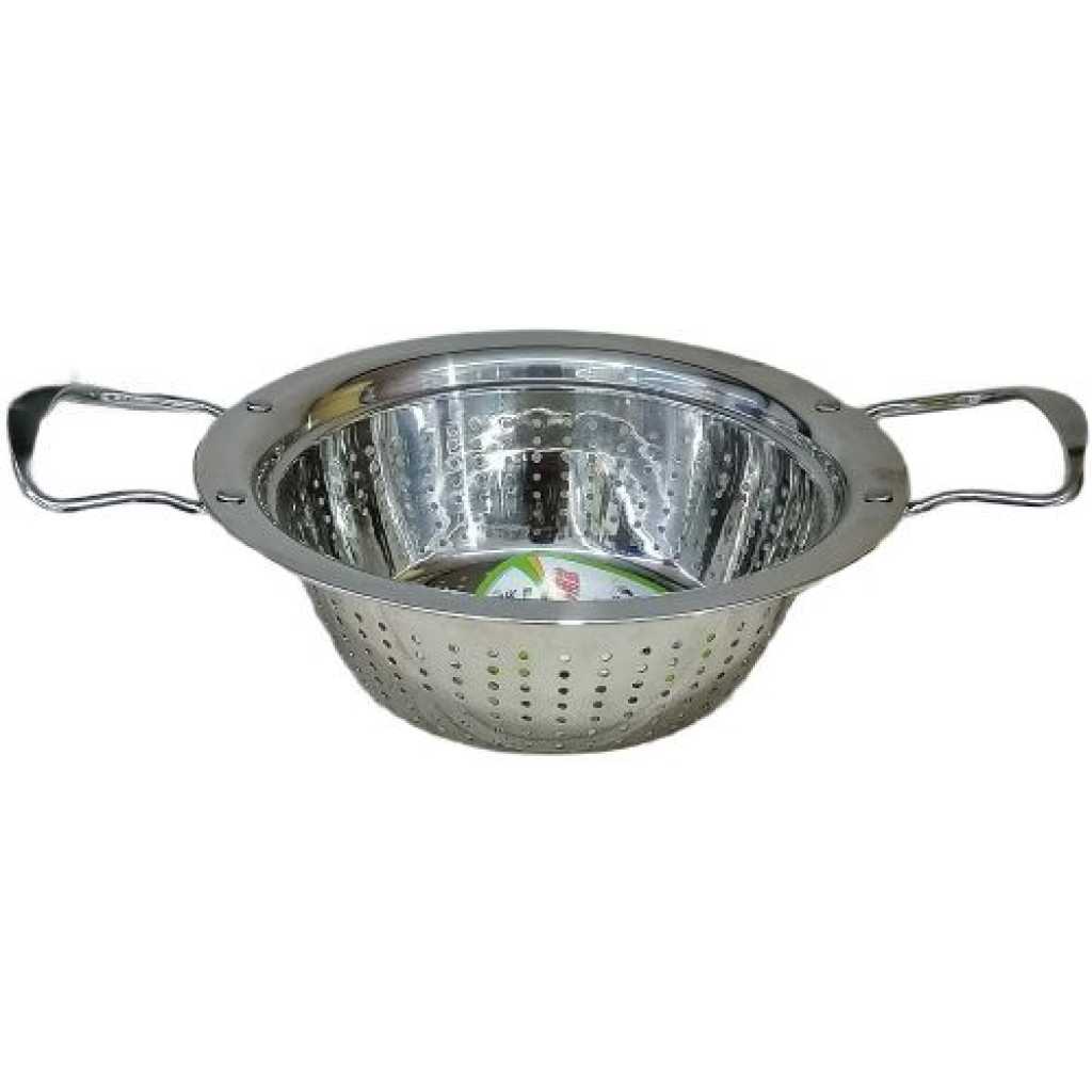 Key Features: 24 cm Stainless Steel Rice, Vegetable Washing Strainer Colander, Silver Color: Silver Stainless steel construction 4.5 mm holes for fast and efficient draining Tapered sides and beaded edges for a more secure grip Sturdy and lightweight With protruding feet or handles