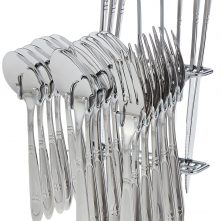 Key Features: 24 Pcs Plain Dinner Cutlery (Forks, Spoons & Knives) With A Stand. 6 forks. 6 teaspoons. 6 tablespoons. 6 table knives. Stand.
