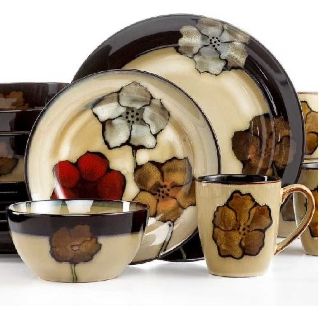 The Simple Lined 24 Piece Square Dinner Set is part of the break and chip resistant clay dinnerware, allowing it to stand up to the rigours of everyday life and still look great. Contemporary plain cream inside with shinny flowers background. Sleek round shapes and flared rims fuse perfectly with the traditional rounded inside, resulting in a totally fresh but timeless look. Versatile enough for everyday and entertaining! Features: Simple 24-Pc Set includes 6-each: 6Dinner Plates, 6 Side Plates, 6 Soup/Cereal Bowls, 6 Stoneware Mugs Dishwasher safe for long lasting patterns Microwave and oven use for versatility Patterns won’t wash, wear or scratch off Break and chip resistance for carefree durability Stackability for cupboard space efficiency. Fine clay