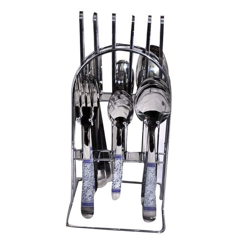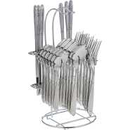 Key Features: 24 Piece Flowered Dinner Cutlery (Forks, Spoons & Knives) With A Stand – Silver. 6 forks 6 teaspoons 6 tablespoons 6 table knives Stand
