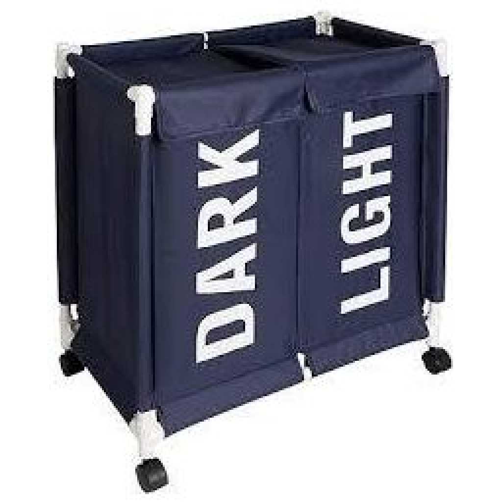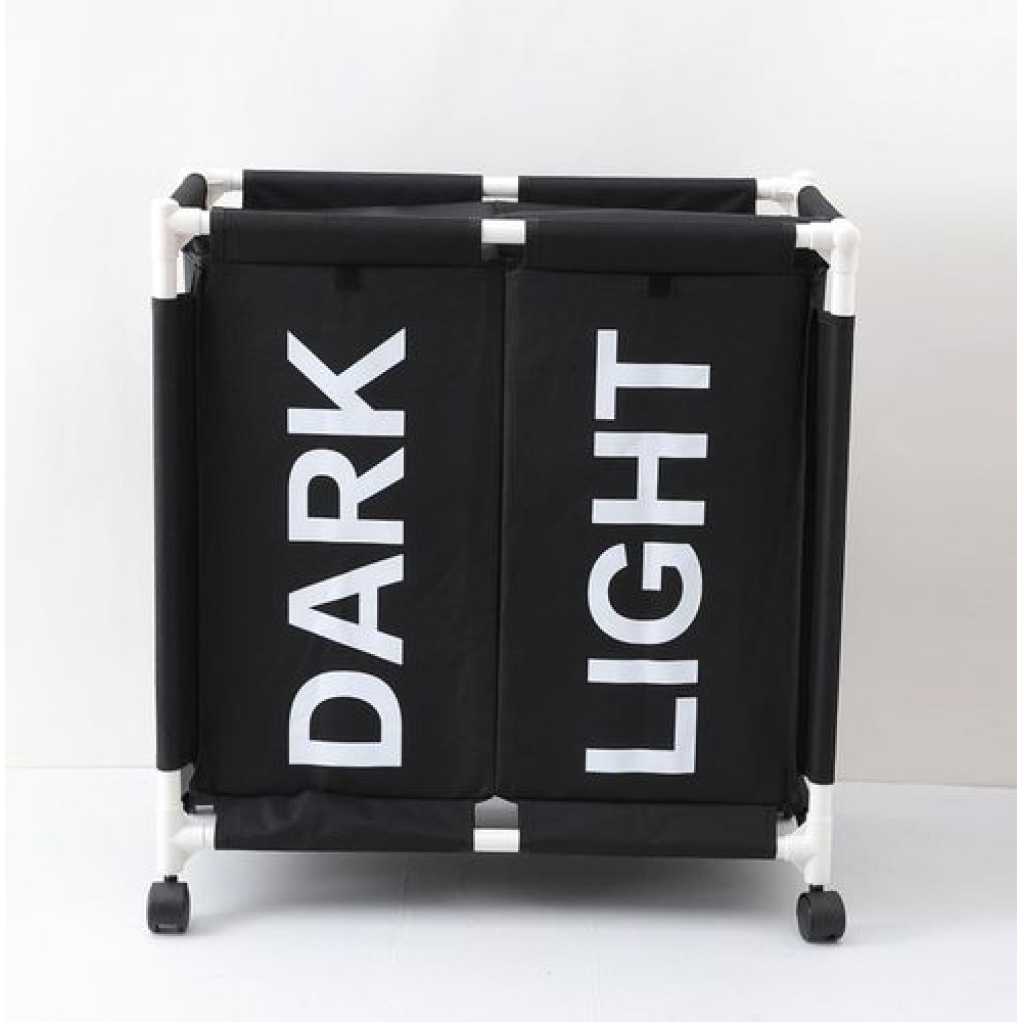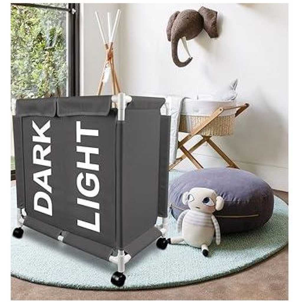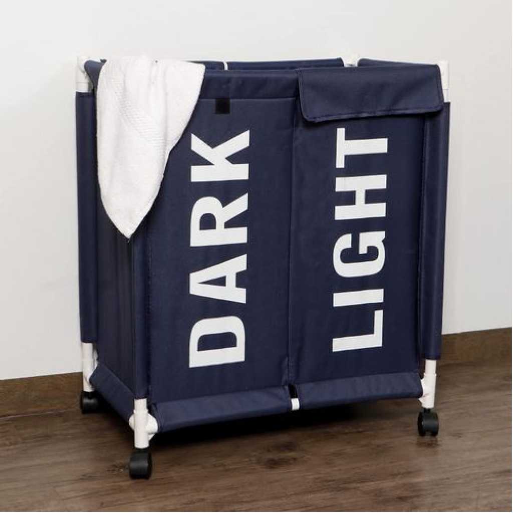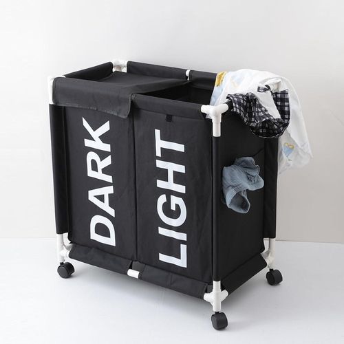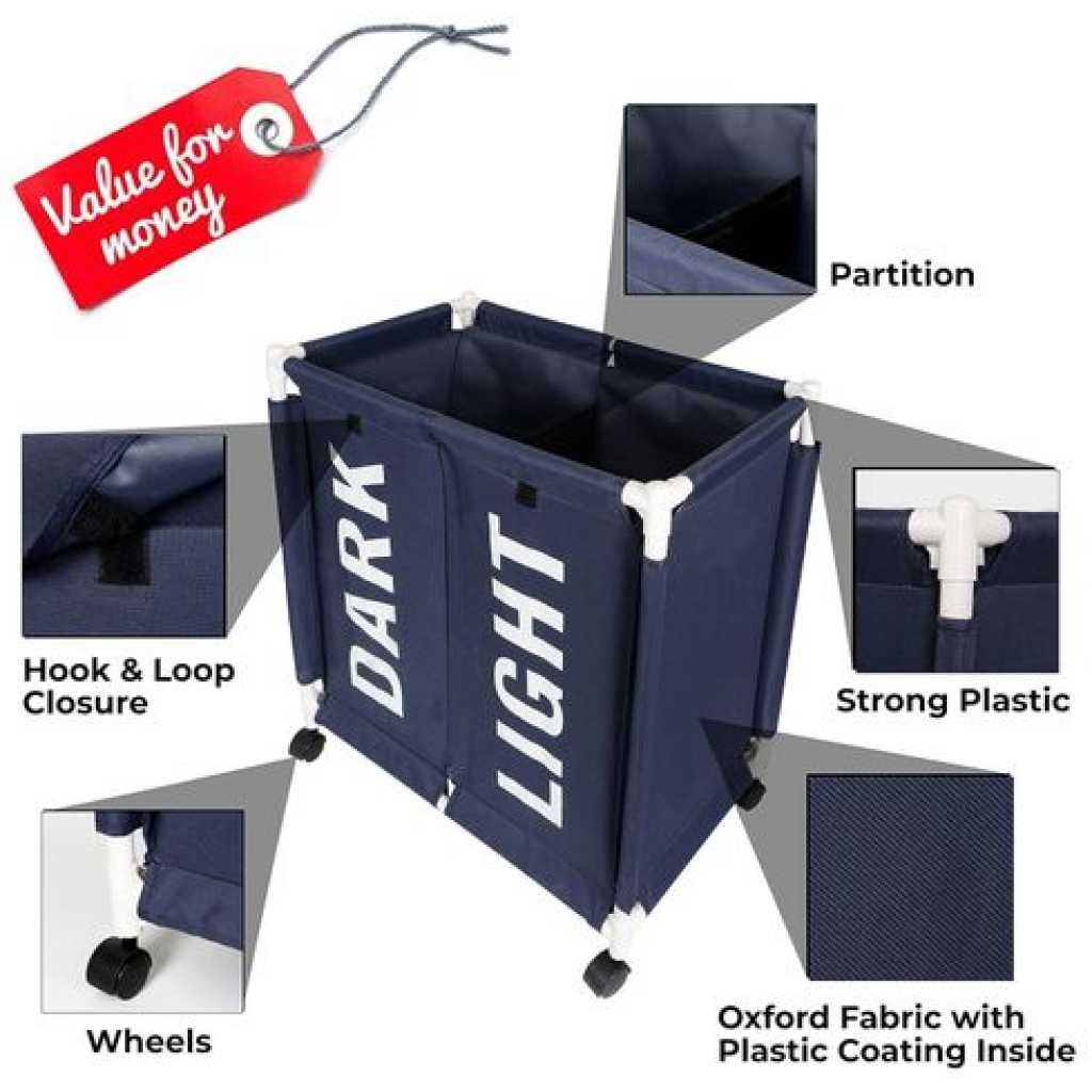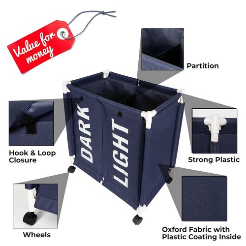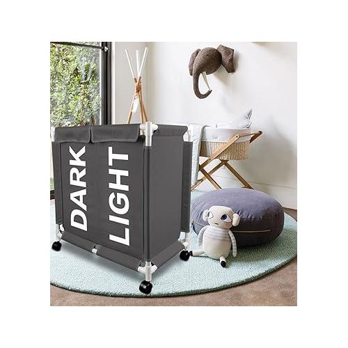 240L Oxford Foldable Corner Fabric Sorter Waterproof Laundry Basket with Wheels 2 Compartment Laundry Hamper with Lid Cover Rolling Laundry Clothes Basket Trolley For Toys Storage Bin Organizer