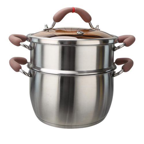 24CM 2 Tier Stainless Steel Steamer for Cooking, Dumpling Steamer, Vegetable Steamer with Handles, Soup Steamer Pot Cookware Pot with Lid – Silver. The double-layer stainless steel steam pot is made of high-quality 304 stainless steel, which is durable. What will you get? Includes a large saucepan (28cm x 16cm-11’’ x 6.2’’), 1 steamer (28cm x 8cm-11’’ x 3.1’’), 2 septa and a lid (28cm x 13cm-11’’ x 5.1’’), enough to make meals for 4-6 people. Multi-purpose use, boiling soup, steaming vegetables, steaming fish, etc. Visualization lid The middle of the lid of the steaming pot is made of transparent glass, you can directly see the cooking situation of the food in the pot, and control the cooking time at any time Insulated handle The handles on both sides of the steamer pots are made of bakelite material, which is comfortable to hold and can effectively block the heat from the pot during cooking to prevent burns. Easy to clean The inner wall of the steamer for cooking is smooth and bright. It is made of high-quality stainless steel and can be in direct contact with food. Only need to rinse it with water, it can be cleaned quickly Compound bottom The bottom of the steam pots adopts a three-layer composite flat-bottom design, which can increase the stability of the pot while ensuring rapid heat transfer.