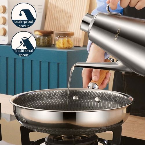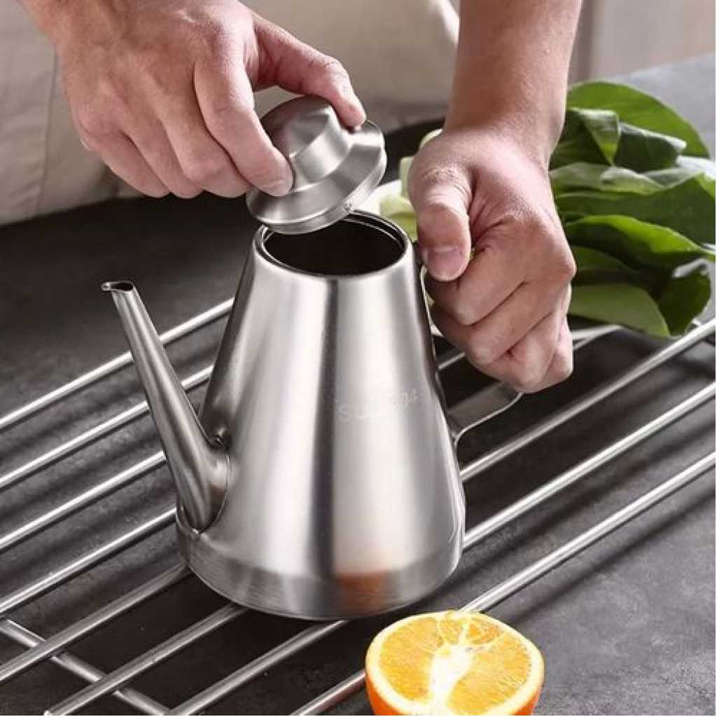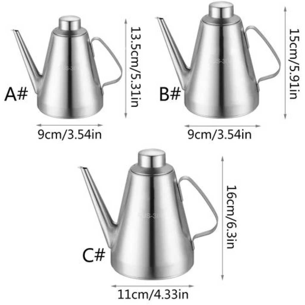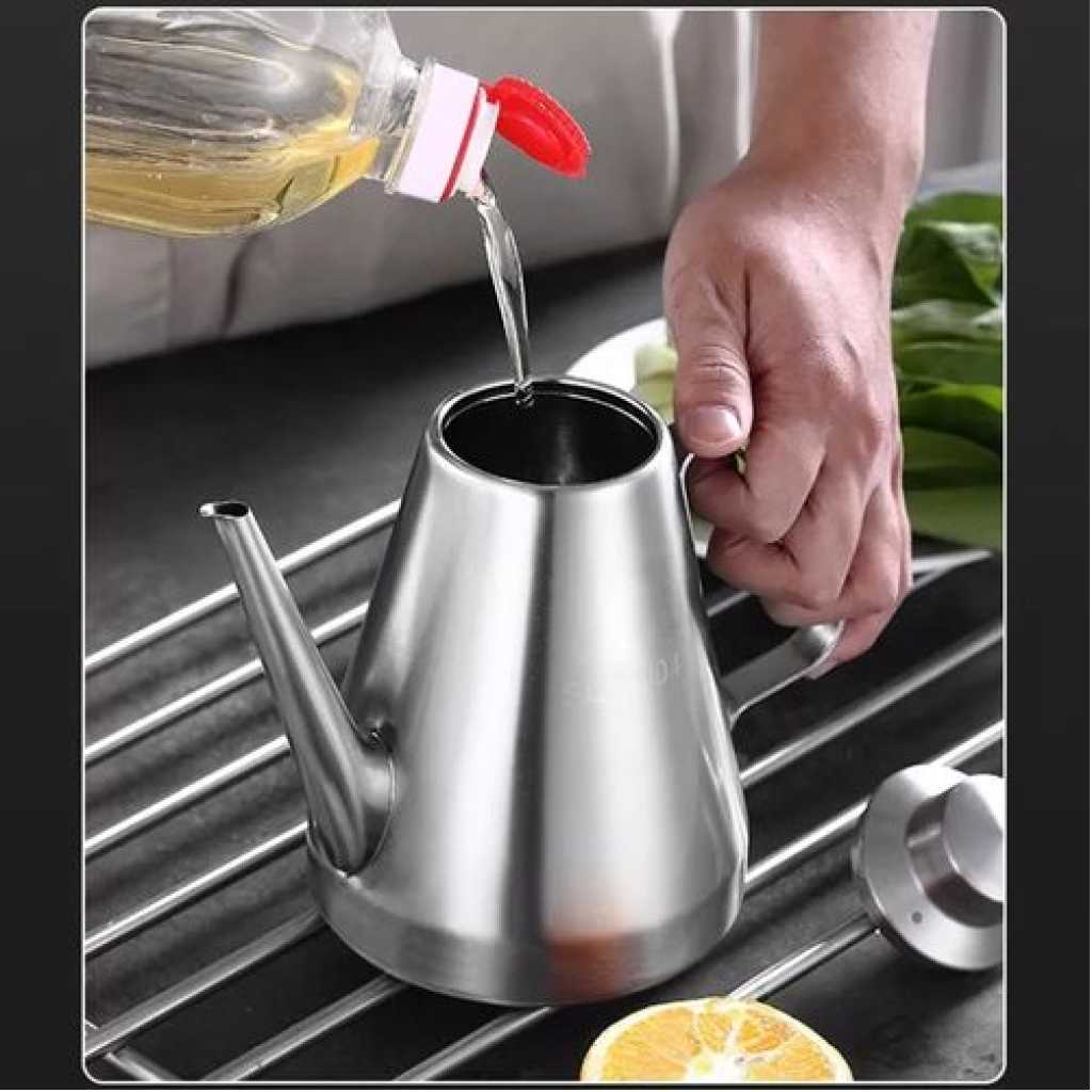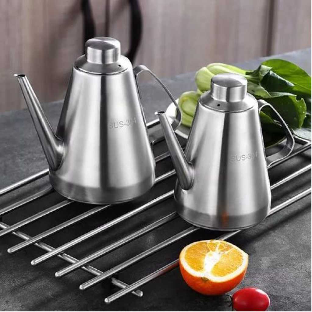 24Oz Oil Dispenser Storage Container Can, Vinegar Jar Pot Pourer Bottle- Silver. Made of stainless steel, this oil dispenser is of quality and safe to use. Its polished surface adds a sense of fashion and modernity, so it matches well with different styles of kitchen decoration. It has a dust-proof cover and anti-drip design to prevent leaks. More importantly, it can control the amount of oil to use, thus avoiding waste and safeguarding health. 【Durable Material】: Olive oil can is made of stainless steel materials, for storing and keeping the oil fresh, and the oil is protected from light. This is a wonderful addition to a kitchen. 【 3 Sizes for you Choose】: 1000ml: 13.5×23.5 cm (DxH); 500ml: 10.5×19.5 cm (DxH); 350ml: 15.5×8.3 cm (DxH). With Ergonomic Wide Handle: Featuring a smooth ergonomic Wide handle, it is comfortable to grip and easy to use. 【Drip Free】: No messy oily kitchen again! Beautiful and perfectly functional. The extremely attractive design looks great in your modern kitchen! The shiny stainless steel oil canister is beautiful out on the counter or tabletop. The best solution for pouring cooking oil and you will enjoy your cooking with it every day! 【 Multi-function Oil Bottle】: Perfect for olive oil, fish oil, soy sauce, coconut oil, oil vinegar, sesame oil, avocado oil, and almond oil dispenser. 【Goose Neck Design 】: This gives you a controlled pour, you won’t over-oil anymore. Gooseneck design, excellent for pouring oil whether in a wok or a pan or best dressing for salad.