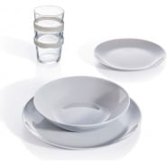 Key Features: 24-piece set; service for 6 Six10.5″ (26.7 cm) dinner plates Six 8.5″ (21.6 cm) salad plates Six 6.25″ (15.9 cm) bowls Six 12 oz mugs The Porcelain square dinnerware is microwave and oven safe to 450 degrees Dishwasher safe for easy cleanup 100 percent Porcelain