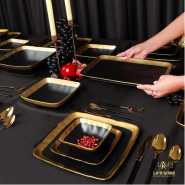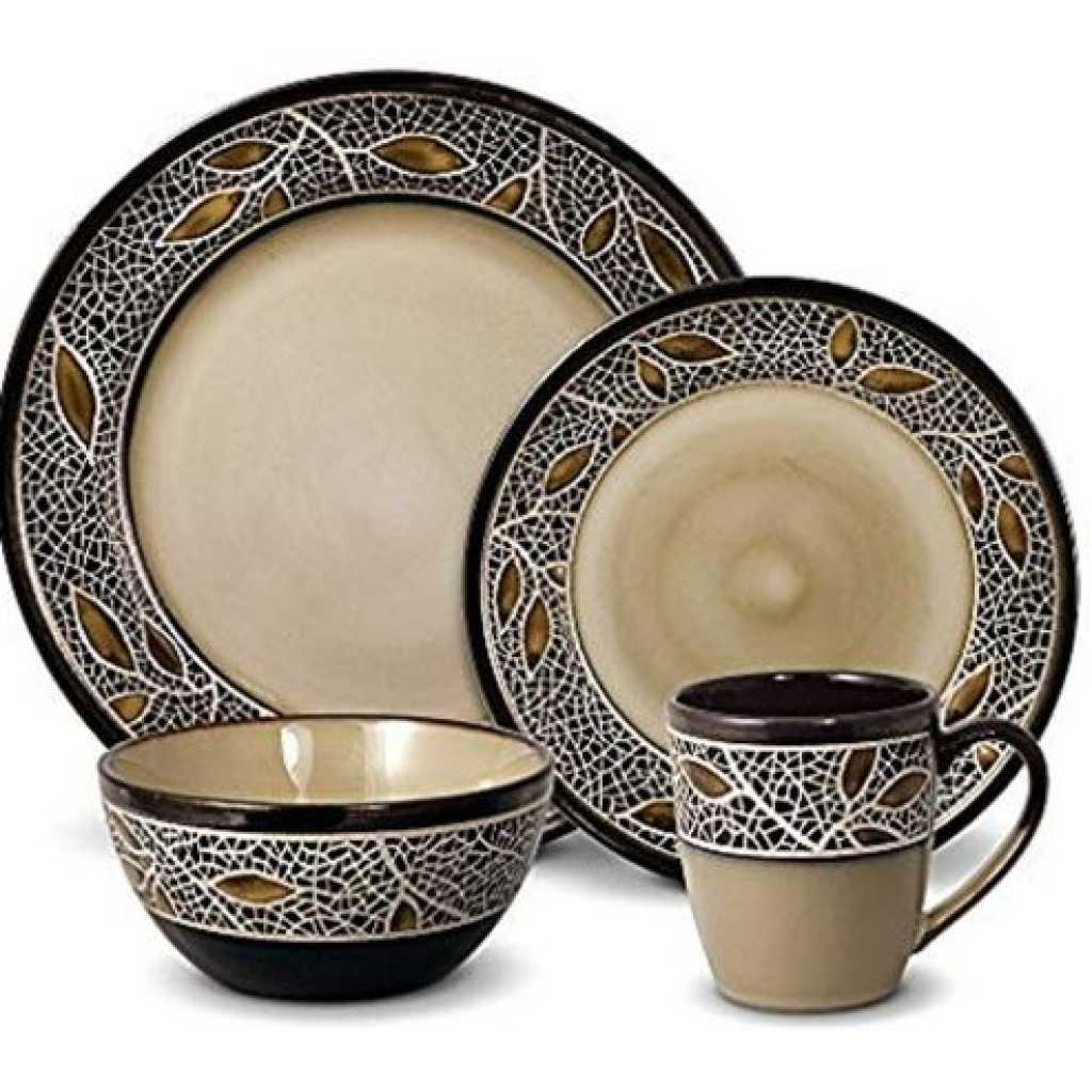 The Simple Lined 24Piece round Dinner Set is part of the break and chip resistant clay dinnerware, allowing it to stand up to the rigours of everyday life and still look great. Contemporary plain cream inside with shinny black background outside . Sleek round shapes and flared rims fuse perfectly with the traditional rounded inside, resulting in a totally fresh but timeless look. Versatile enough for everyday and entertaining!
