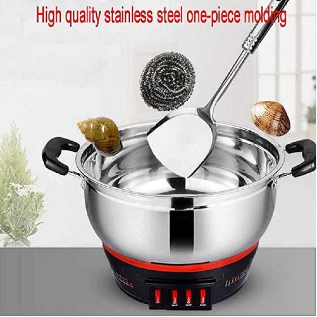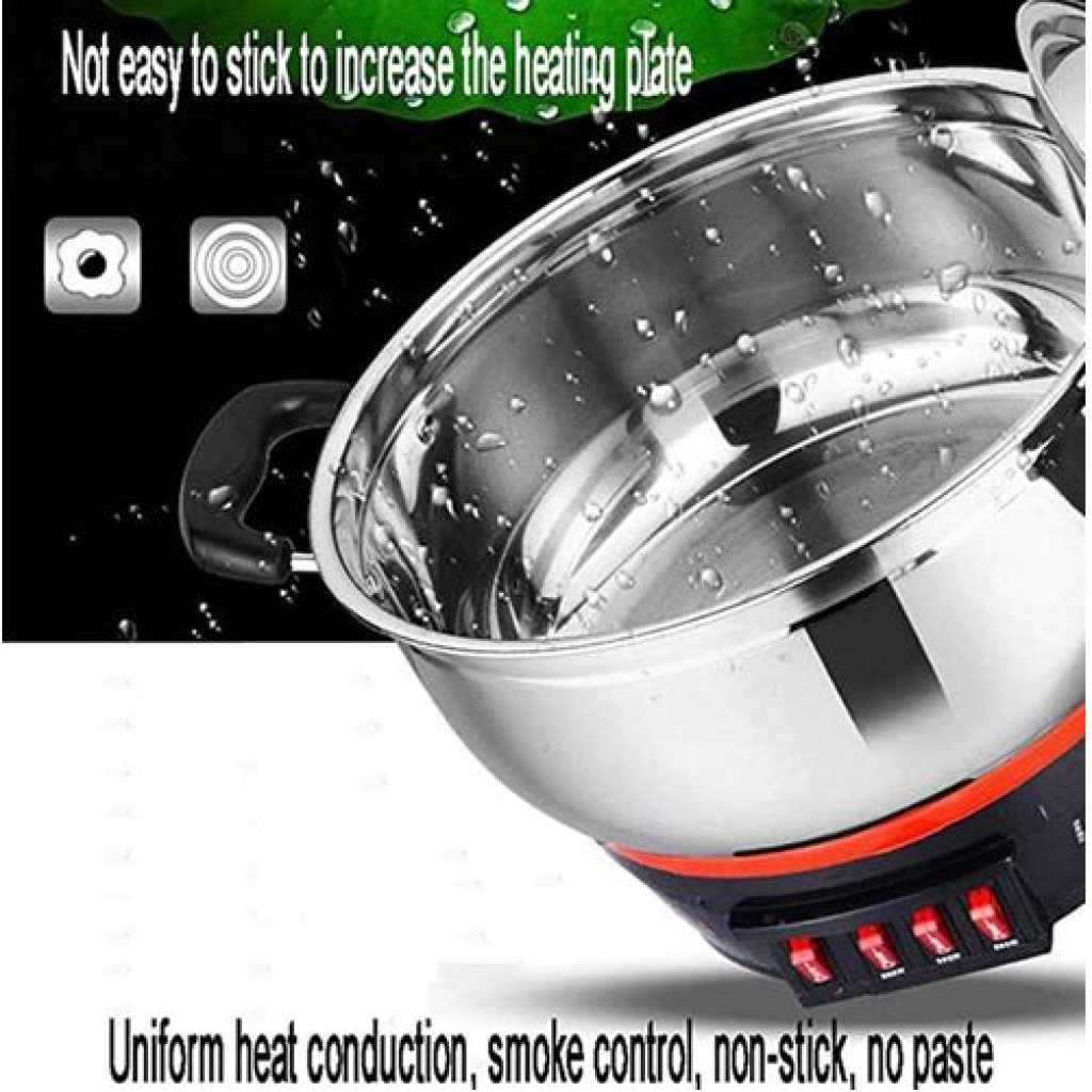 The steamer is made of food-grade stainless steel in one piece, which is tough and does not deform, strong and durable, the thickness of 4MM ensures that the whole pot is heated evenly, retains the original nutrients of the food, and tastes the deliciousness of the steamed product. Stir-fried/steamed/fried/shabu/fried/simmered, everything is good, it can be simmered slowly on a low fire, it can be fried on a high fire, and it is nutritious to eat, all kinds of deliciousness are easy to get, and you can become a chef yourself. Supplement the iron element, enhance the iron element in the body, make the cooking taste fresh and fragrant, zero loss, seal the nutrition, keep the food, and the original flavor. Ergonomic design, anti-scalding and non-slip bakelite handle, comfortable hand feel, heat and electricity isolation, suitable distance and not hot. Relying on the formation of a carbide film on the surface of the pot body, oil film, non-stick pan without coating, no rust and no color, retain the original taste of food, no nutrition loss. Energy-saving and durable, the bottom gathers heat to lock the temperature, cooking faster and more energy-saving, scratch-resistant and wear-resistant, long service life. Specification: Product material: Primary cast iron Product voltage: 220V Product specifications: 32CM, 34CM, 36CM, 38CM Product power: 2100W Four switch bins: Heat preservation 800W 500w 800w Package included: 1 * Cast iron multi-function electric heating pot