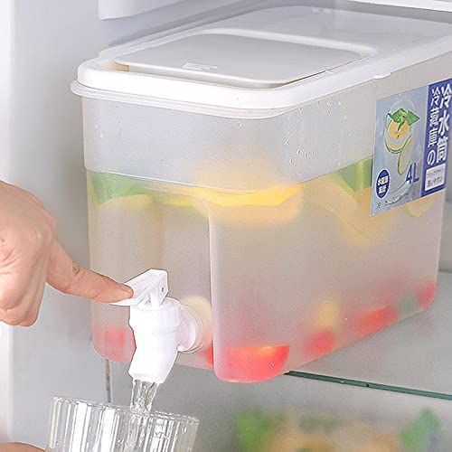 Key Features: 【FOOD GRADE MATERIAL】Our beverage dispenser is made of high quality PP material, BPA free and safe to use. 【FAUCET DESIGN】The faucet design allows you to get drinking water by gently pressing the faucet. Designed with rubber ring, anti-blocking, sealing, no leakage. 【HIGH PERFORMANCE】Our water kettle is resistant to high temperatures and low temperatures (-20°C to 120°C). You can pour boiling water directly into the kettle without deformation. 【SAVE SPACE】The body is tailor-made for the refrigerator. With 4 L large capacity while without taking up much space. 【LARGE CALIBER LID】It adopts a large-caliber lid, no need to unscrew, easy to open, convenient to add fruit, add ice cubes, and clean thoroughly, without dead ends.
