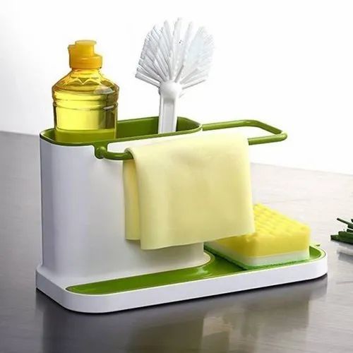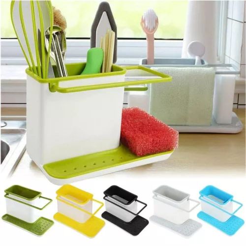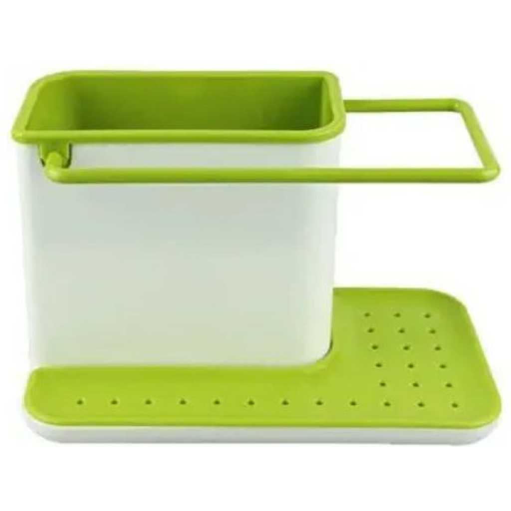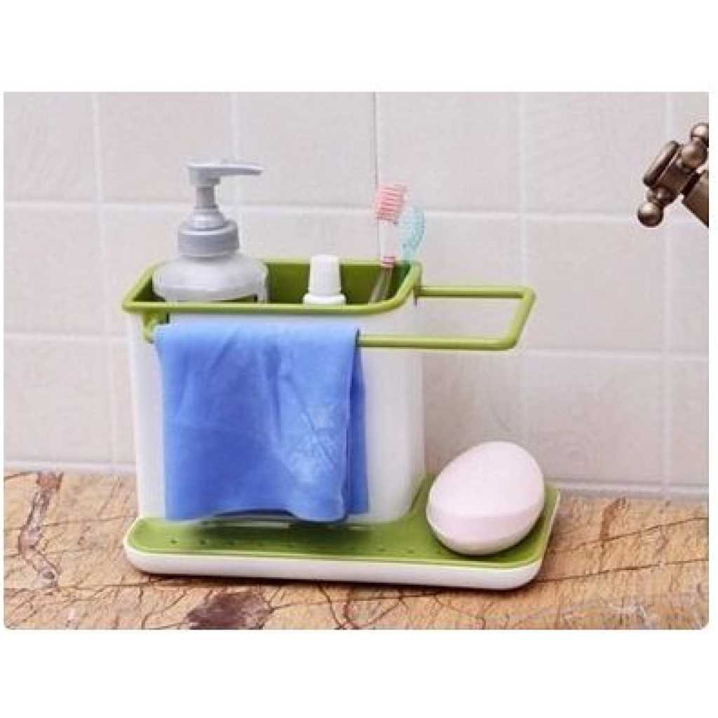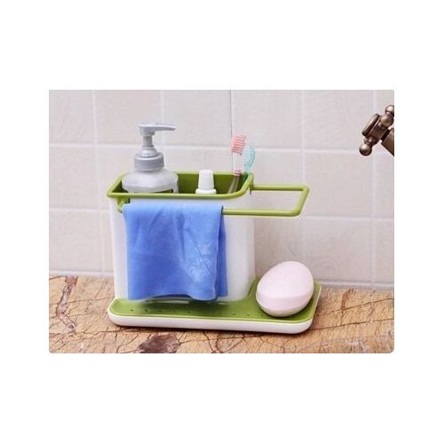 Key Features: 3 in1 Kitchen Sink Organizer Stand Draining Holder Towel Soap Brush Sponge Rack- Green The washing up has never been so organized with this highly innovative design. Organise storage space with ease for the sink area Integrated drainer for clothes and sponges Color: May Vary, Material: Plastic Package Includes: 1 x 3 in-1 kitchen drainer
