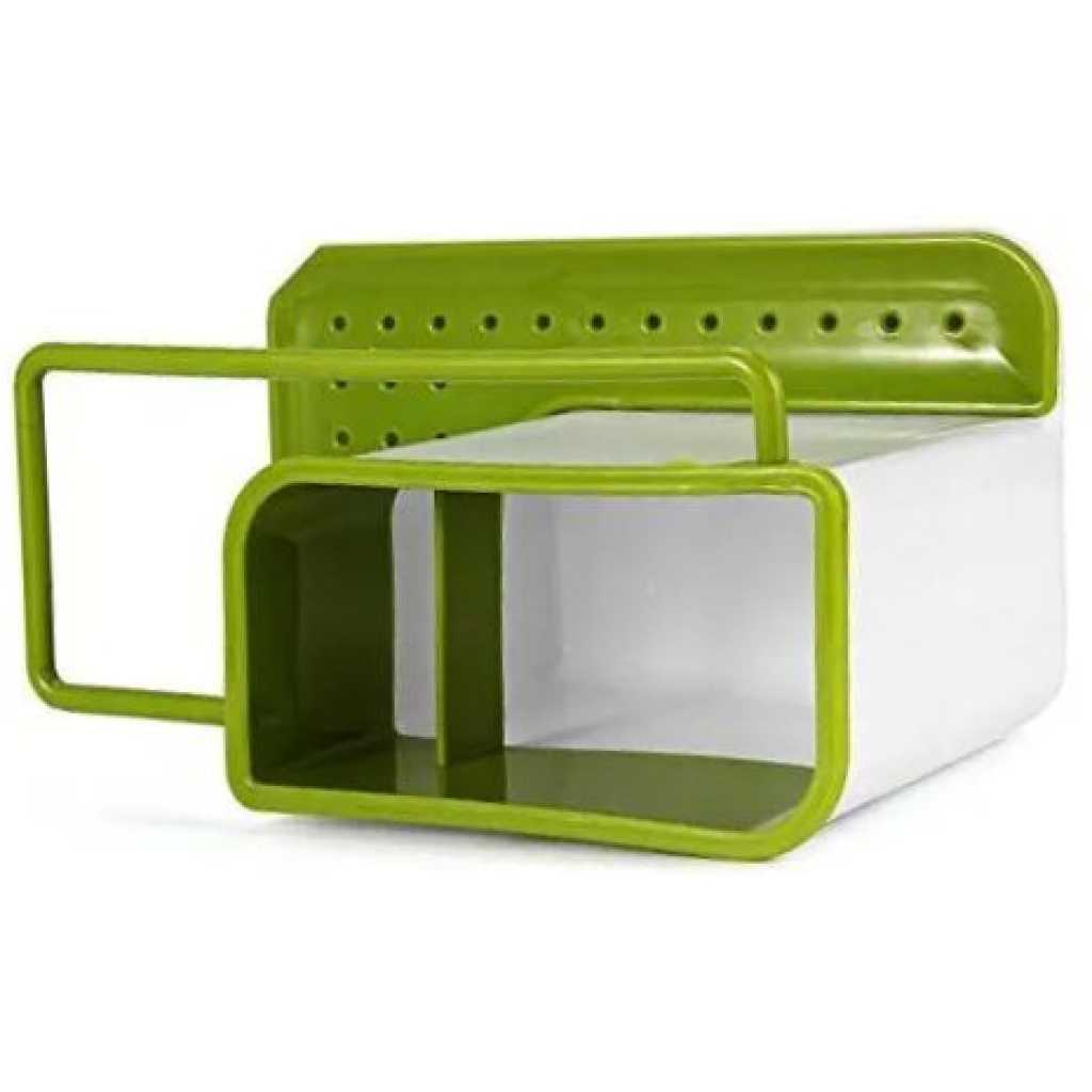 3 in1 Kitchen Sink Organizer Stand Draining Holder Towel Soap Brush Sponge Rack- Green 3 in 1 Stand for Kitchen Sink. The washing up has never been so organized with this highly practical design. The main body of the unit provides ample space for storing a washing-up liquid bottle and brush, and the integrated rail provides hanging and drying space for damp dishcloths. A large draining plate within the base creates a dedicated area for placing wet sponges and the concealed reservoir beneath the unit collects any drained water ready for disposal. The entire unit can be dismantled for easy cleaning. Organized storage space for the sink area Integrated drainer for cloths and sponges Dismantles for easy cleaning Dishwasher safe Material: ABS Color – (As per the availability) The washing up has never been so organized with this highly innovative design. Organise storage space with ease for the sink area Integrated drainer for clothes and sponges Color: May Vary, Material: Plastic Package Include: 1 x 3 in-1 kitchen drainer