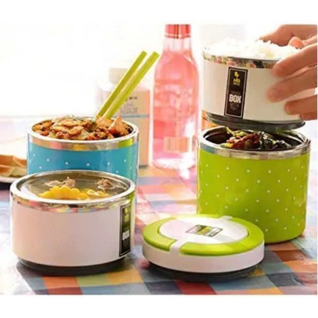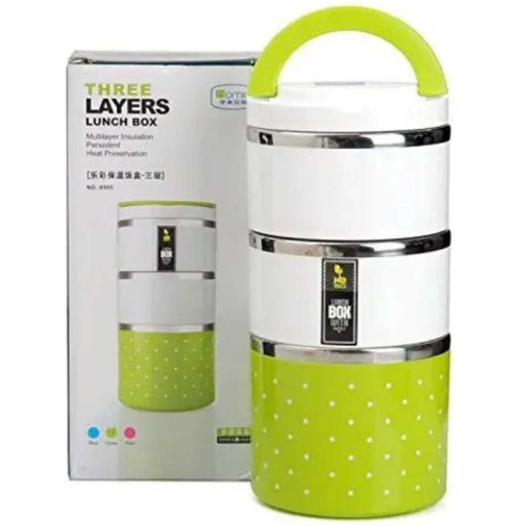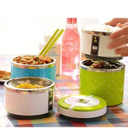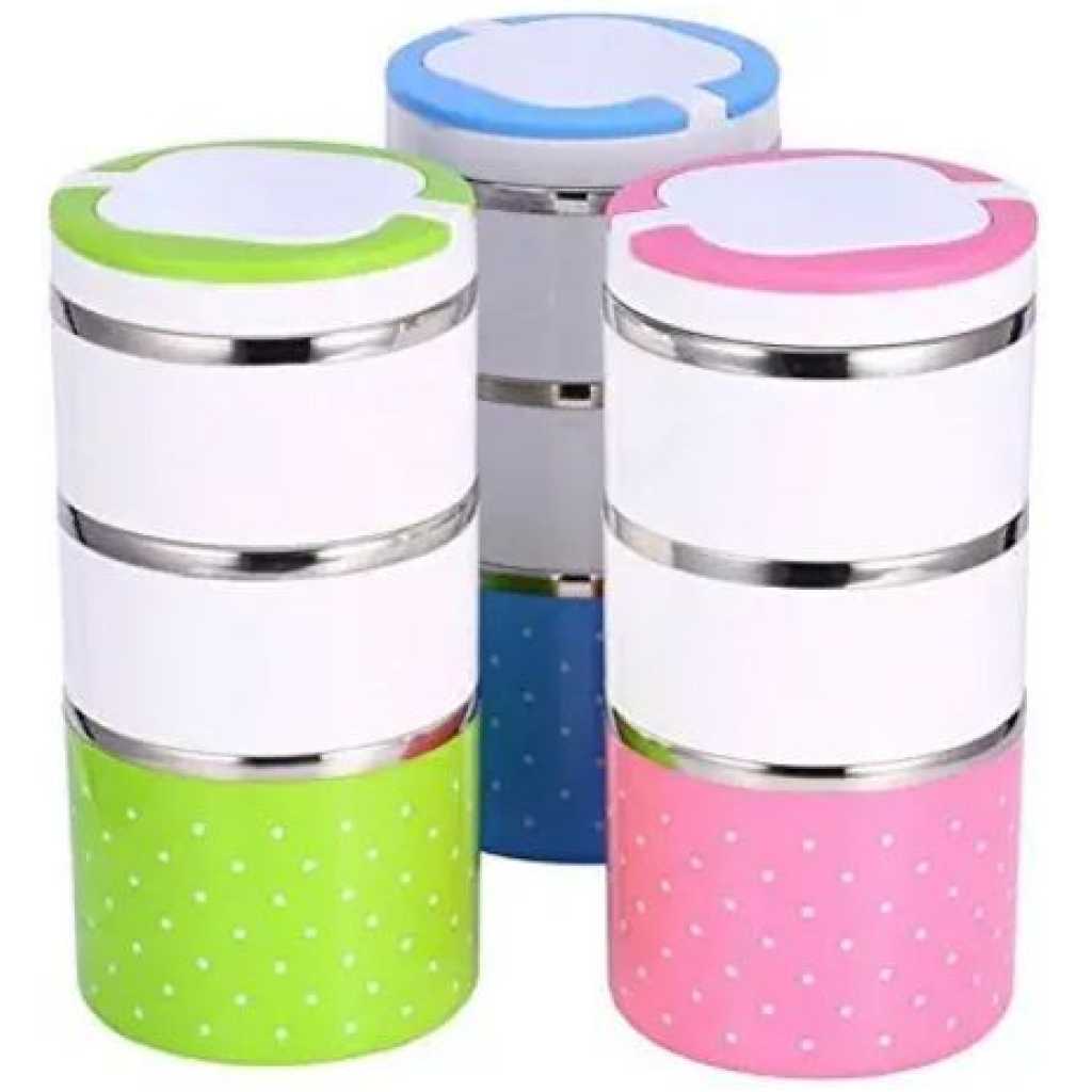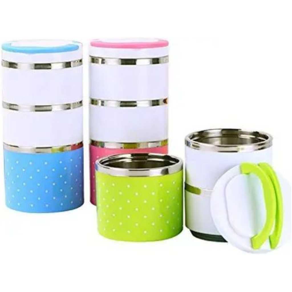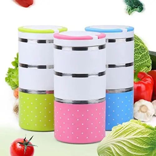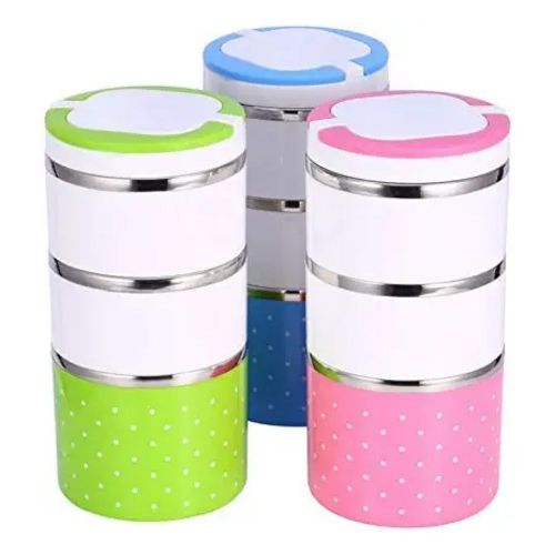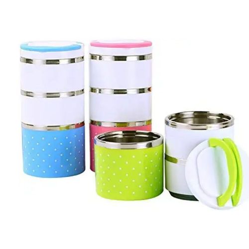 3 Layer Steel Food Insulated Lunch Box Container Tiffin- Multi-colours. 3 Layered Food Grade Stainless Steel Tiffin Box Or Lunch Box Made With Union Stainless Steel from inside And Outer Covering With Plastic. Take this Tiffin Box to the office, school, on the road, camping or hiking. This durable Tiffin Box is the perfect size to fit in your backpack or purse and is durable enough to keep up with your busy lifestyle. Insulation ensures that the food remains hot for up to 4-6 hours. Colour: Multicolor, Material: Stainless Steel, Package Contents: 1 Stainless Steel 3 Layer Lunch Box.