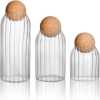 Key Features: ????The storage container is made of high quality glasses, which is more thinner, lighter, capable of withstanding thermal shock,The smooth cork stopper is made from eco-friendly natural wood. ????The storage bottle with a flexible cork cover effectively keeps the air and moisture out, creating a moistureproof environment to keep your food inside clean and fresh. ????The ribbed design is sure to add style and class to your kitchen, conveniently making it easier to pick up the jars while looking better than a standard glass jar. Great for displaying more than just your dry food, show off some stunning stones or store your favourite bath salts in these jars. ????These glass storage canisters with streamlined design are exquisite, great durability. It’s ideal for storing sugar, rice, cereals, nuts, beans, snacks, pasta, coffee and tea, espresso, snacks, preserves, jams, chutneys, flour, spices, cookies, seasonings, and fresh handicrafts, bathroom supplies.