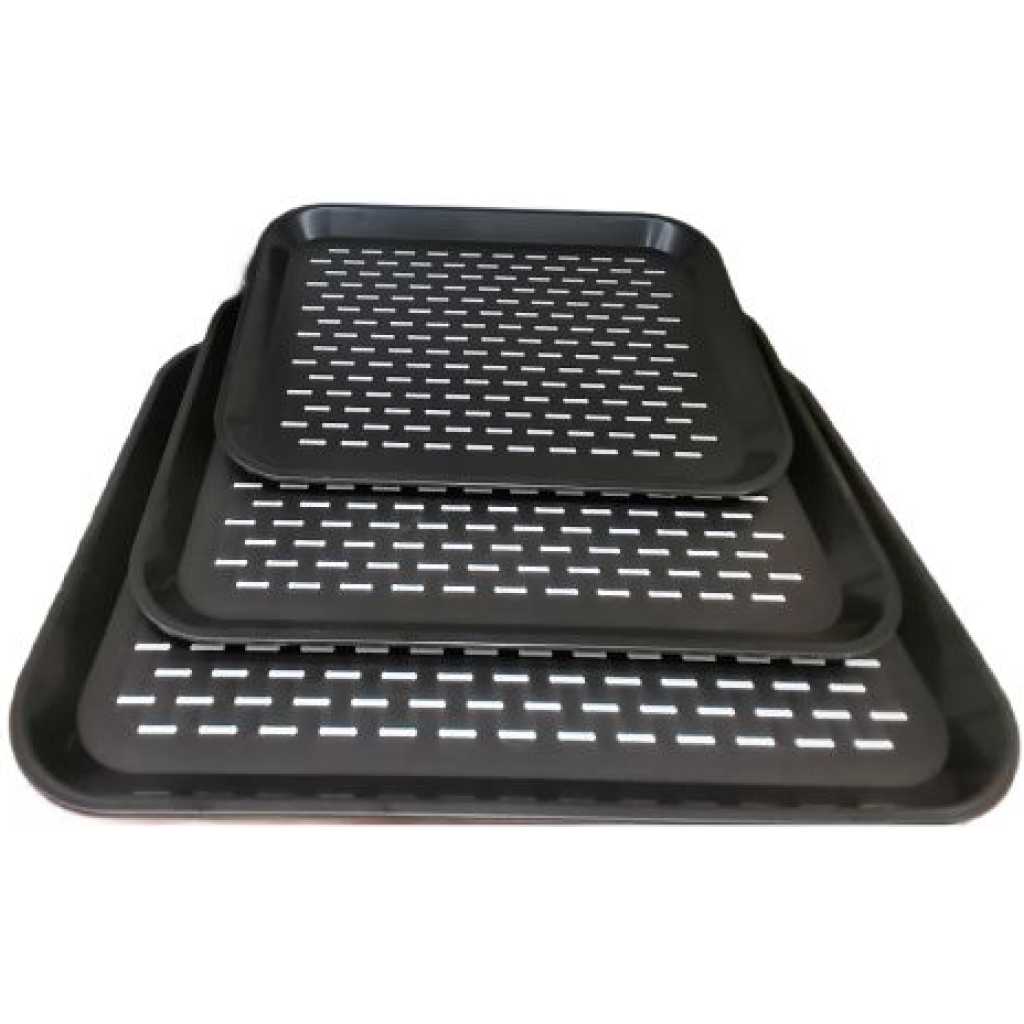 3 PCS Of Rubber Non-slip Serving Trays Platters- Multi-colours. True rubber Trays with the reliability you can expect from such a line of products. This 3-tier rectangular serving tray set consists of 3 different size serving trays: The trick is to find something that will provide perfect aesthetics and functionality no matter what your venue. Whether it’s beans and franks, sushi, or osso buco, these melamine serving tray sets will make your meal a success.