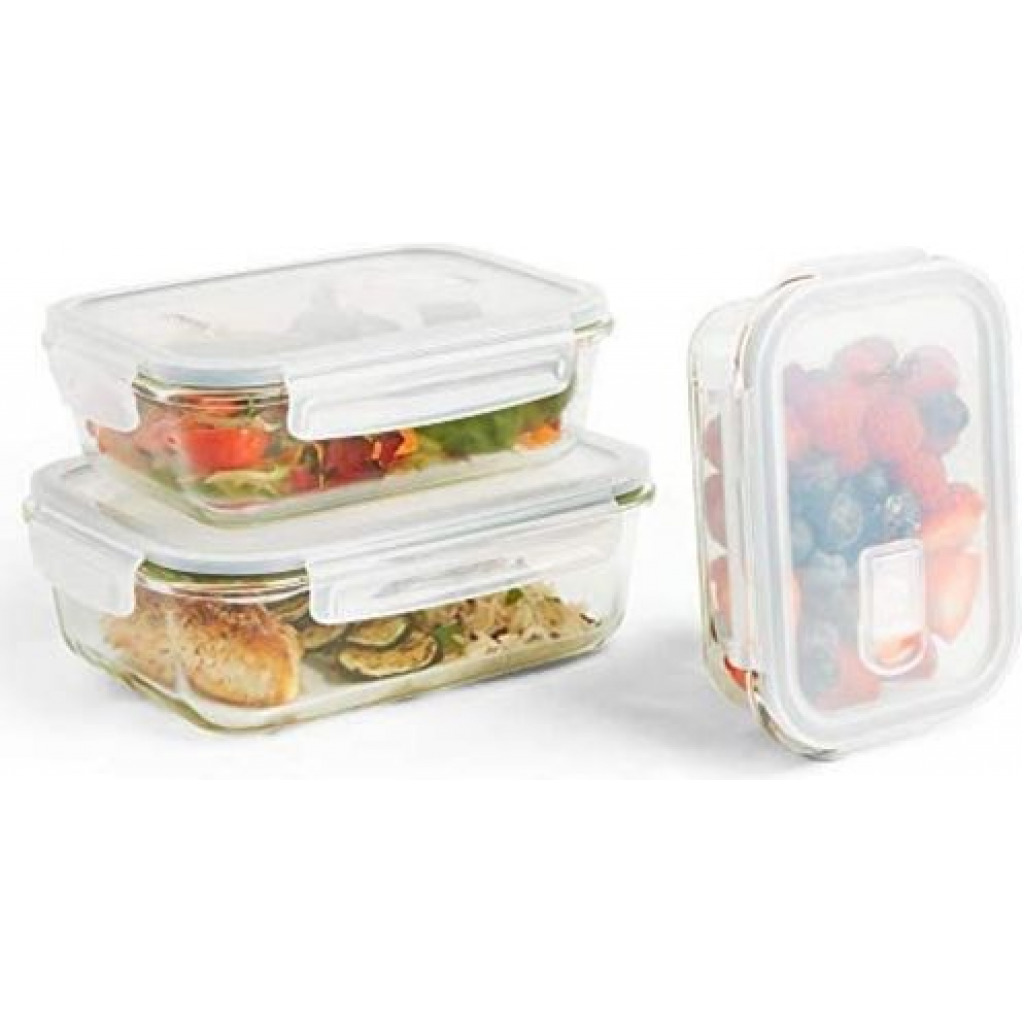 Our container set is great for an active lifestyle – simply prep your meals at home, and then eat on the go.Glass food containers will keep your delicious food tasting like it should! Unlike plastic, glass does not stain or absorb flavors or odors, so food always tastes how it’s supposed to. No harmful chemicals leach into your food so you can always feel good about packing your family’s food here! Sealing ring: It adopts wide-edge design to increase the contact surface with glass, and the sealing effect is better.Lock: Four-sided lock design to lock in moisture.Venting hole: open hole design, open and breathable when using microwave oven, convenient and quick.Glass:Natural & Safe. Glass container made of borosilicate glass,making them absolutely green and health friendly.It can withstand temperatures from -4℉ to 758℉. No strange smells after heated in the oven or microwave. The lids are BPA-free (BPA is an industrial chemical found in plastic that may damage your health).