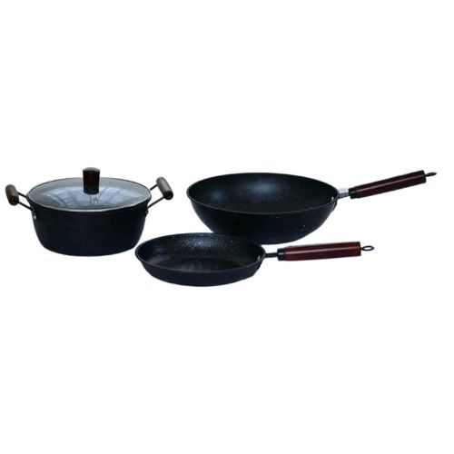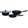 Key Features: 3 Piece Non-Stick Saucepan, Frying Pan, Wok Cookware – Black. 4 Piece Saucepan, Frying pan and wok. Premium Die-Cast Aluminium Body Oven safe, Dishwasher safe, PFOA FREE Durable Non-Stick Coating Sturdy Tempered Glass Lids with Steam Vent Moulded Side Handles