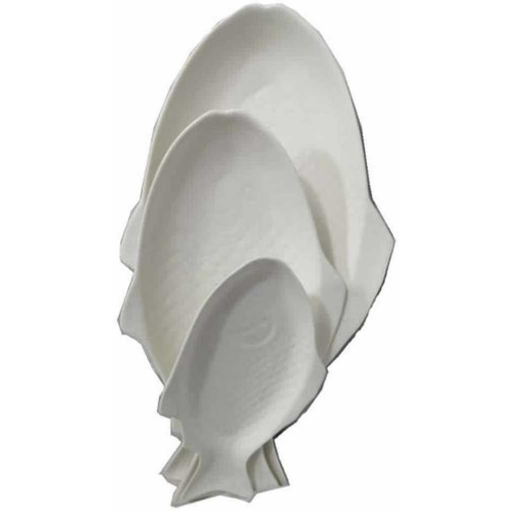 Key Features: Perfect for family gatherings, parties, weddings and restaurants, etc. It will deeply impress your guests with simple visual beauty. An ideal gift for your friends, families. The plate features with beautiful color, unique fish shape design, multi-function and high quality. More eye-catching and attractive than the routine storage plates in the current market. Color: White. Material: Ceramic. 11,15,19 inches